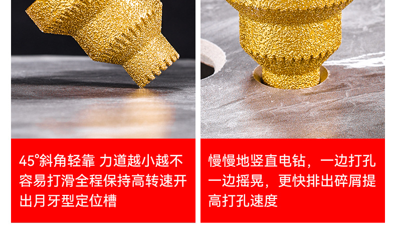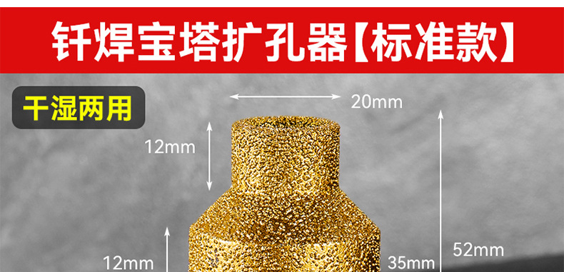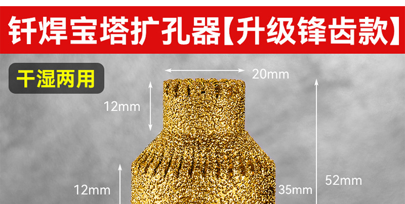 Apuntador de soldadura fuerte dorado de expansión de baldosas de dientes frondosos Perforador de perforación manual de diamante multicapa cónico