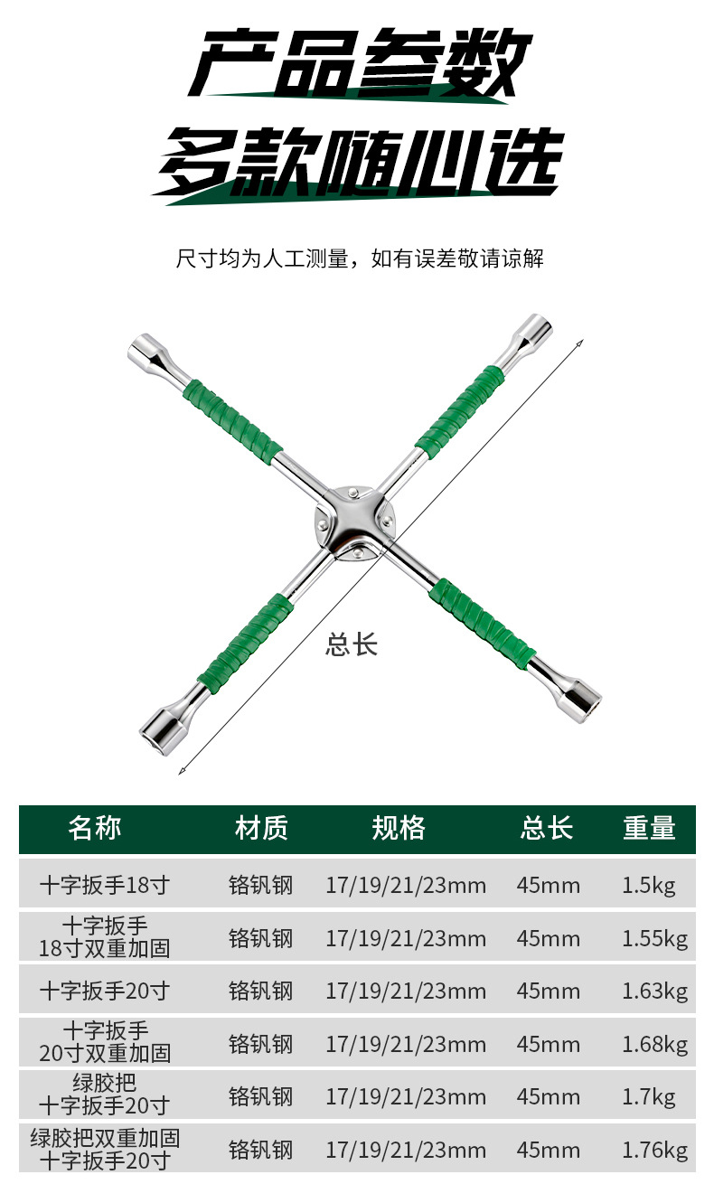 Nuevo ahorro de mano de obra universal cromo vanadio acero alargado alta dureza reparación de automóviles y desmontaje herramienta Cruz neumático llave