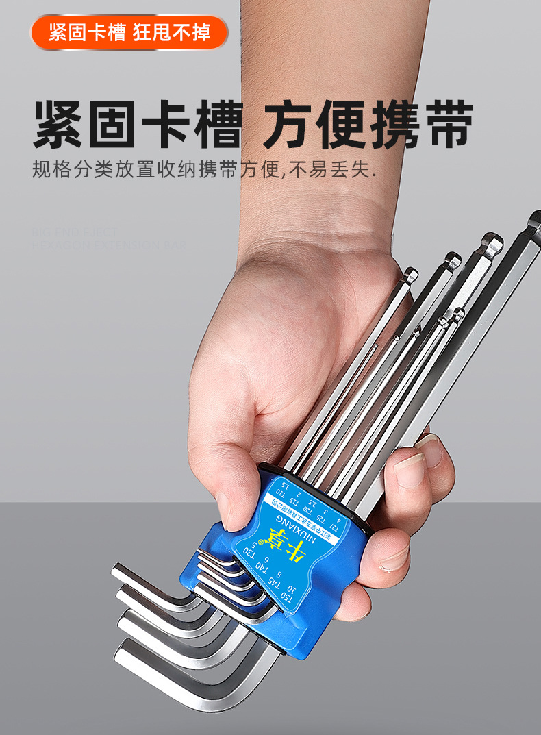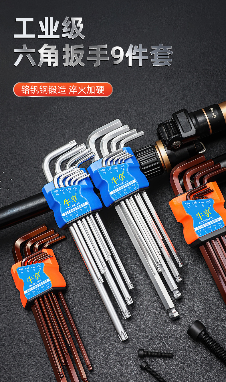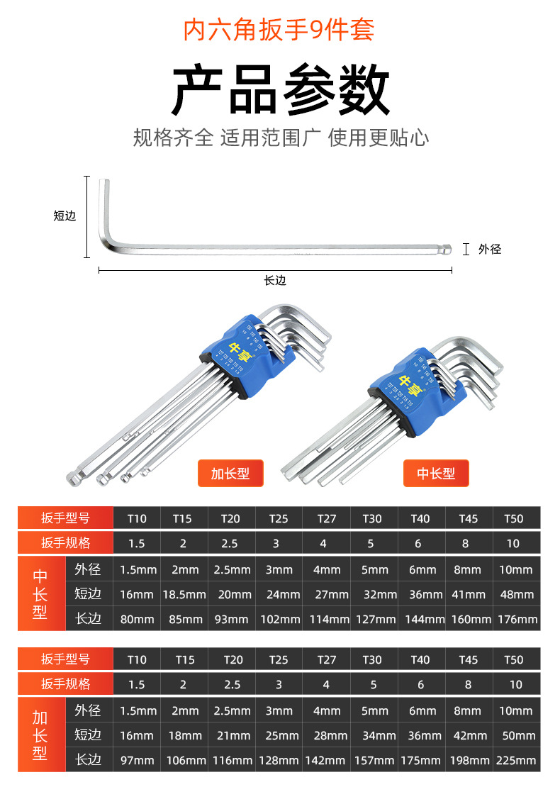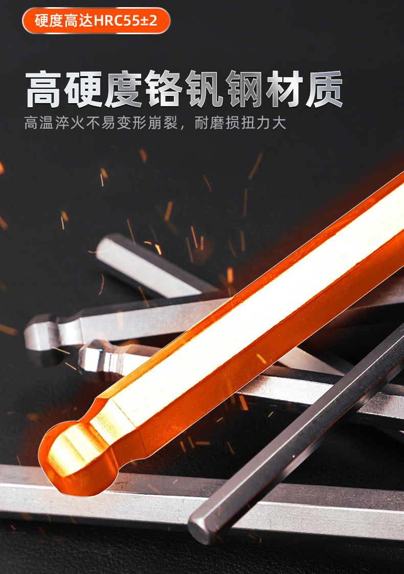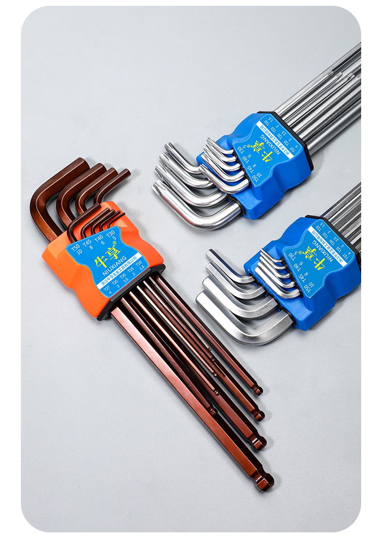 Llave hexagonal de cabeza esférica de acero al cromo vanadio de alta resistencia, juego universal de 9 piezas de alta dureza, llave hexagonal alargada y dura