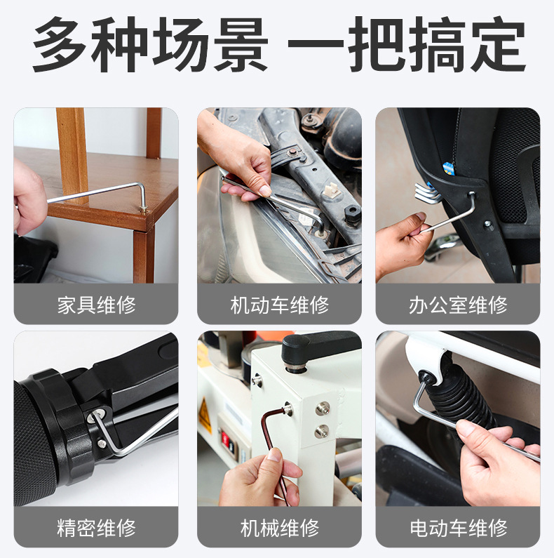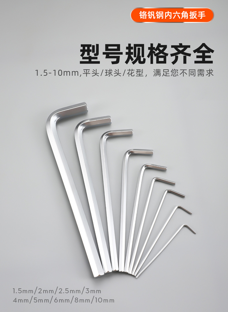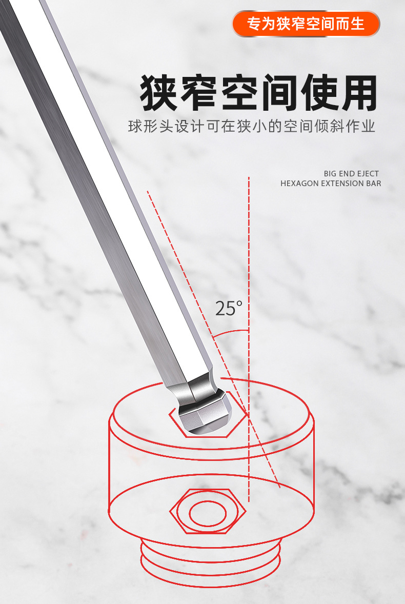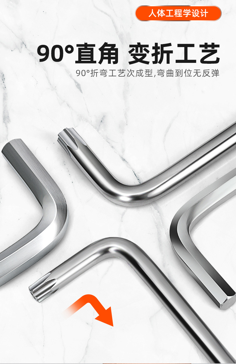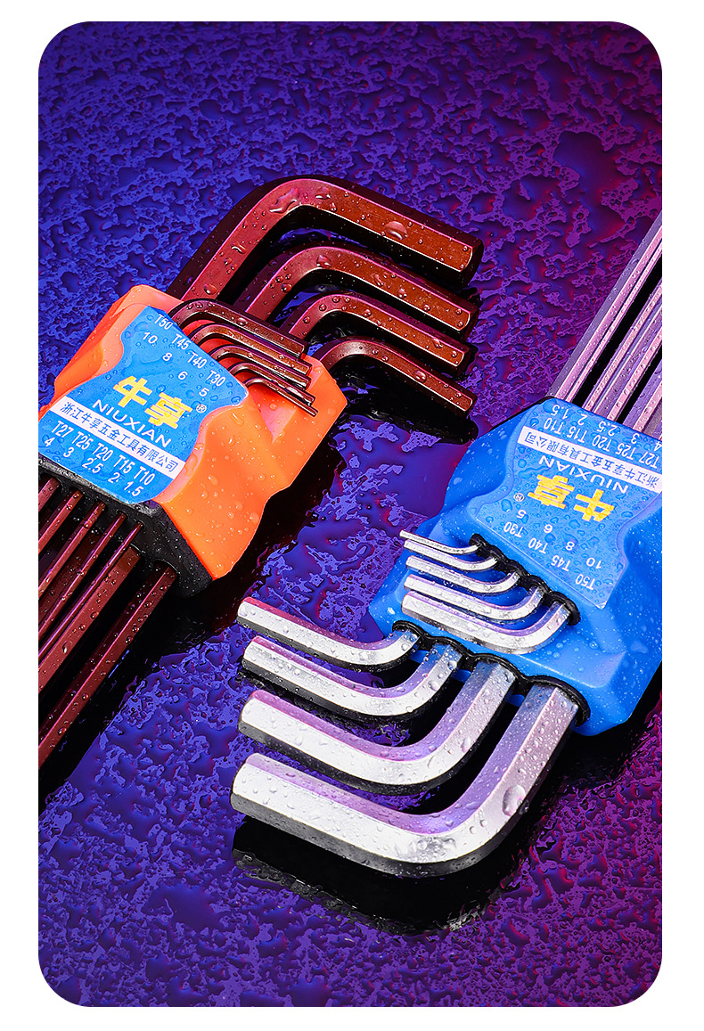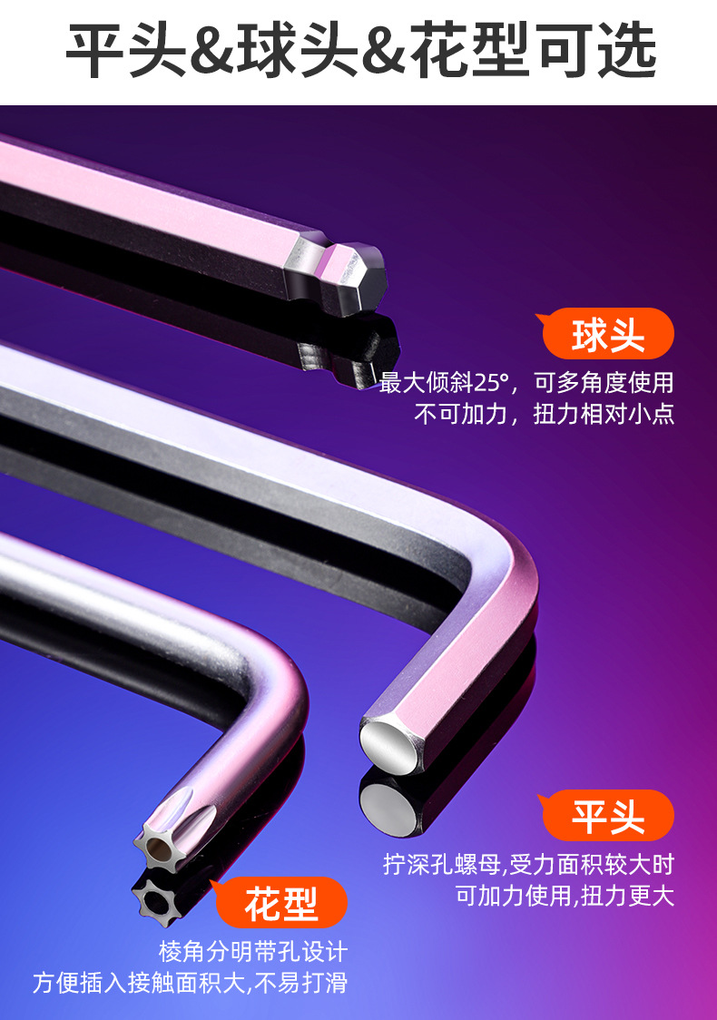 Llave hexagonal de cabeza esférica de acero al cromo vanadio de alta resistencia, juego universal de 9 piezas de alta dureza, llave hexagonal alargada y dura