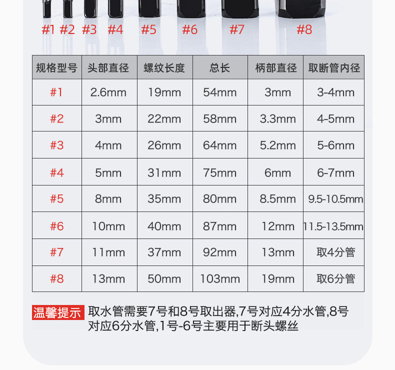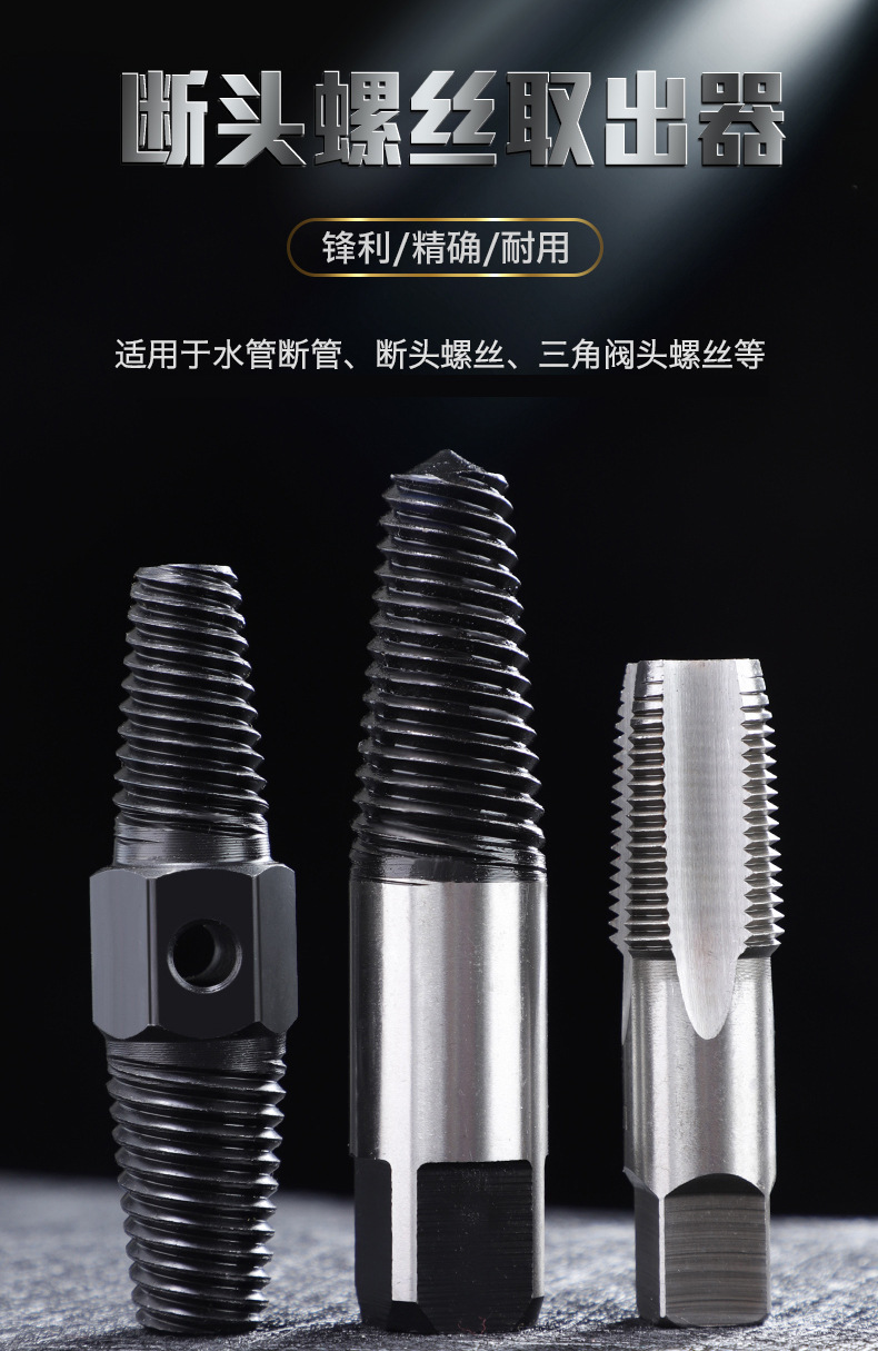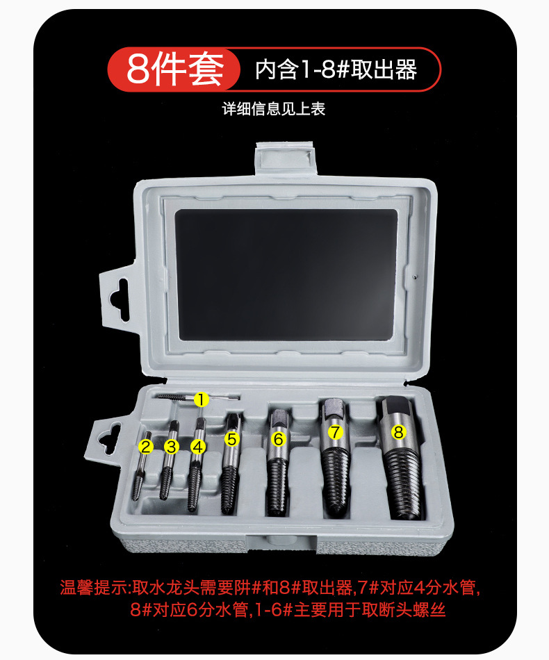 Válvula de ángulo universal de alta dureza, extractor de rotura de alambre, juego en caja de 5 piezas, extractor de rotura de alambre de grifo de 4 puntos y 6 puntos para uso doméstico