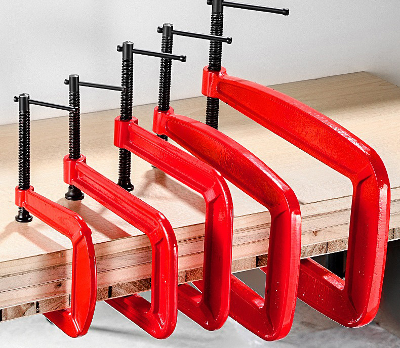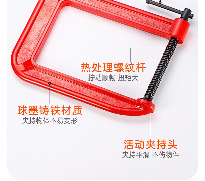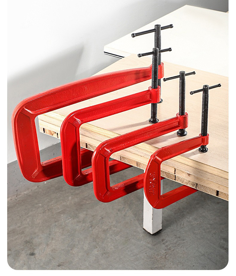 Carpeta en forma de G para carpintería gruesa y pesada multifuncional, de grado industrial, gran abrazadera en forma de G de garganta profunda de hierro fundido extra apretado y fuerte