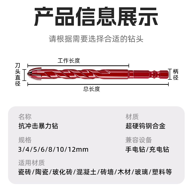 6 - 14mm perforación de impacto de hormigón de azulejos hexagonal super duro doble espiral perforación violenta resistente al impacto