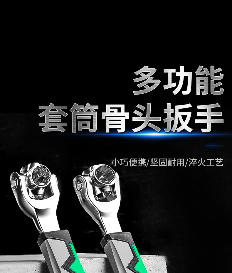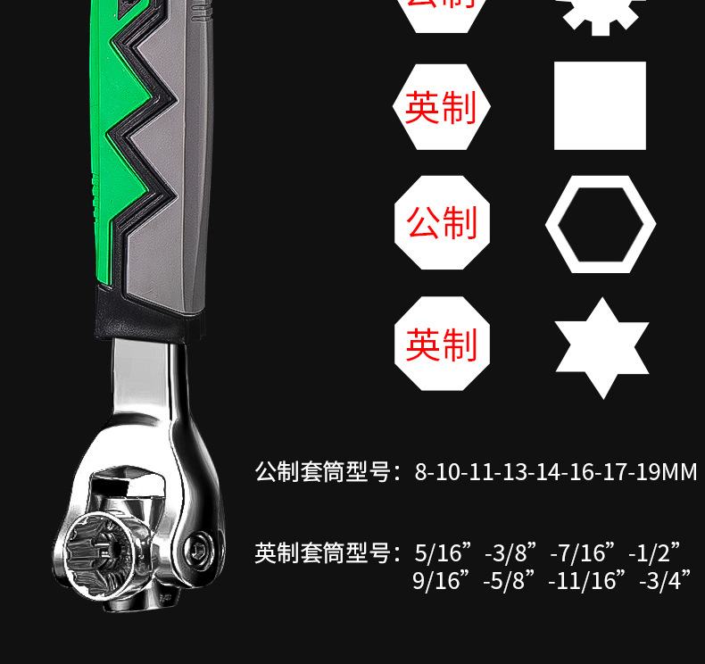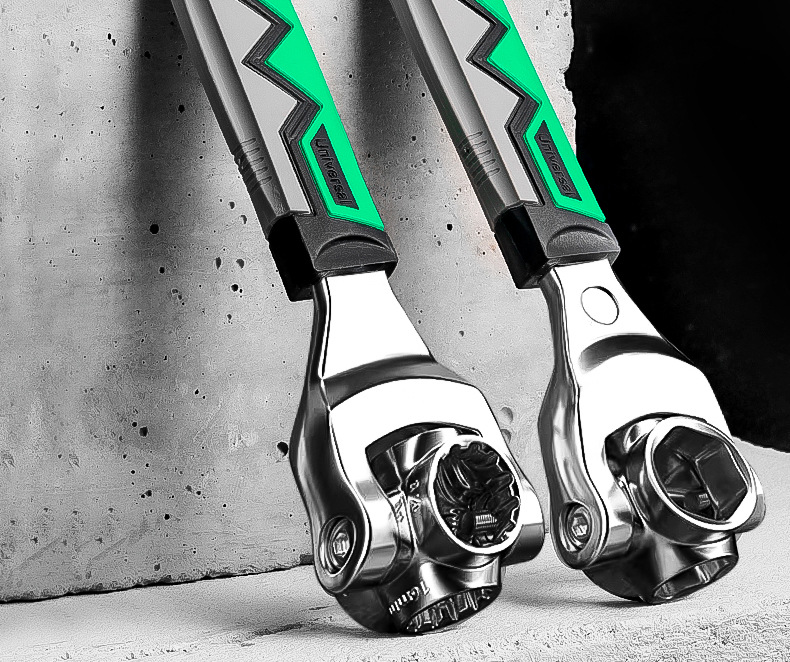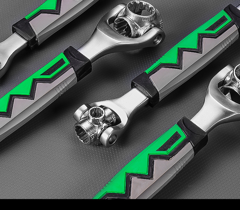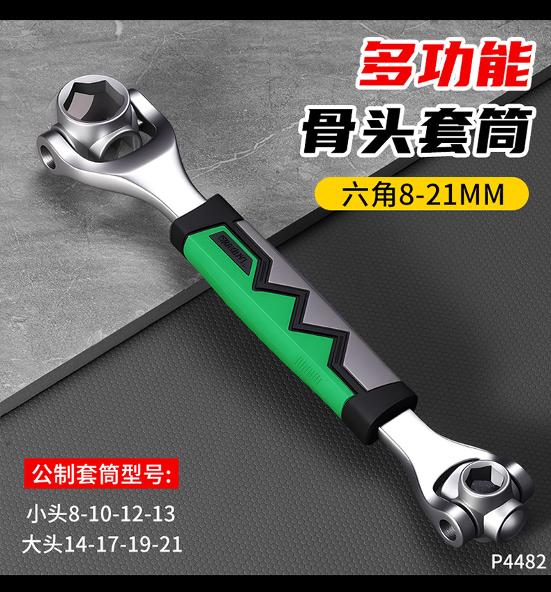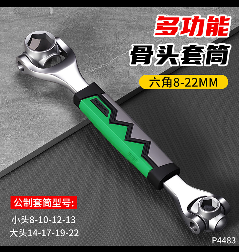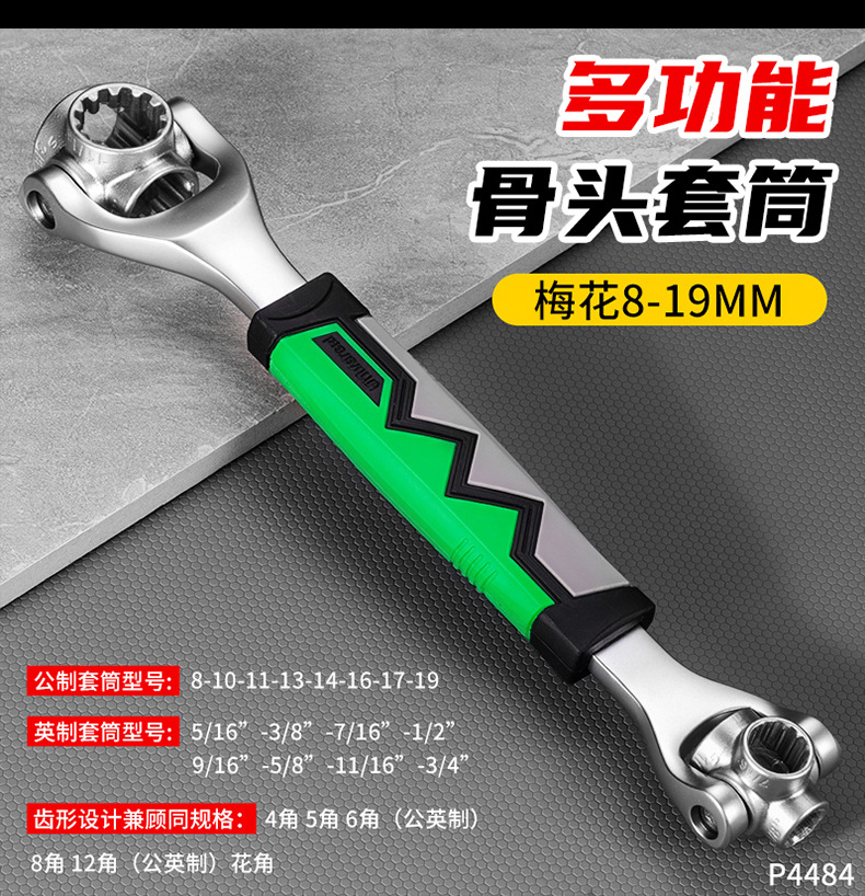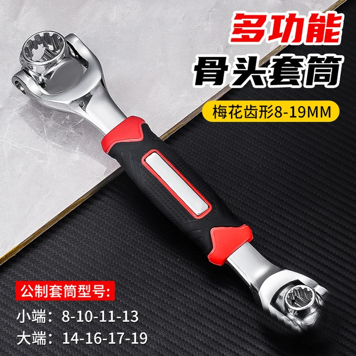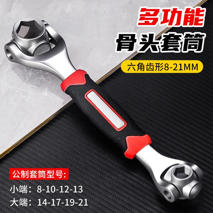 Llave de tubo hexagonal giratoria universal de 360 grados Llave de tubo de hueso de acero con alto contenido de carbono multifuncional 52 en uno grande
