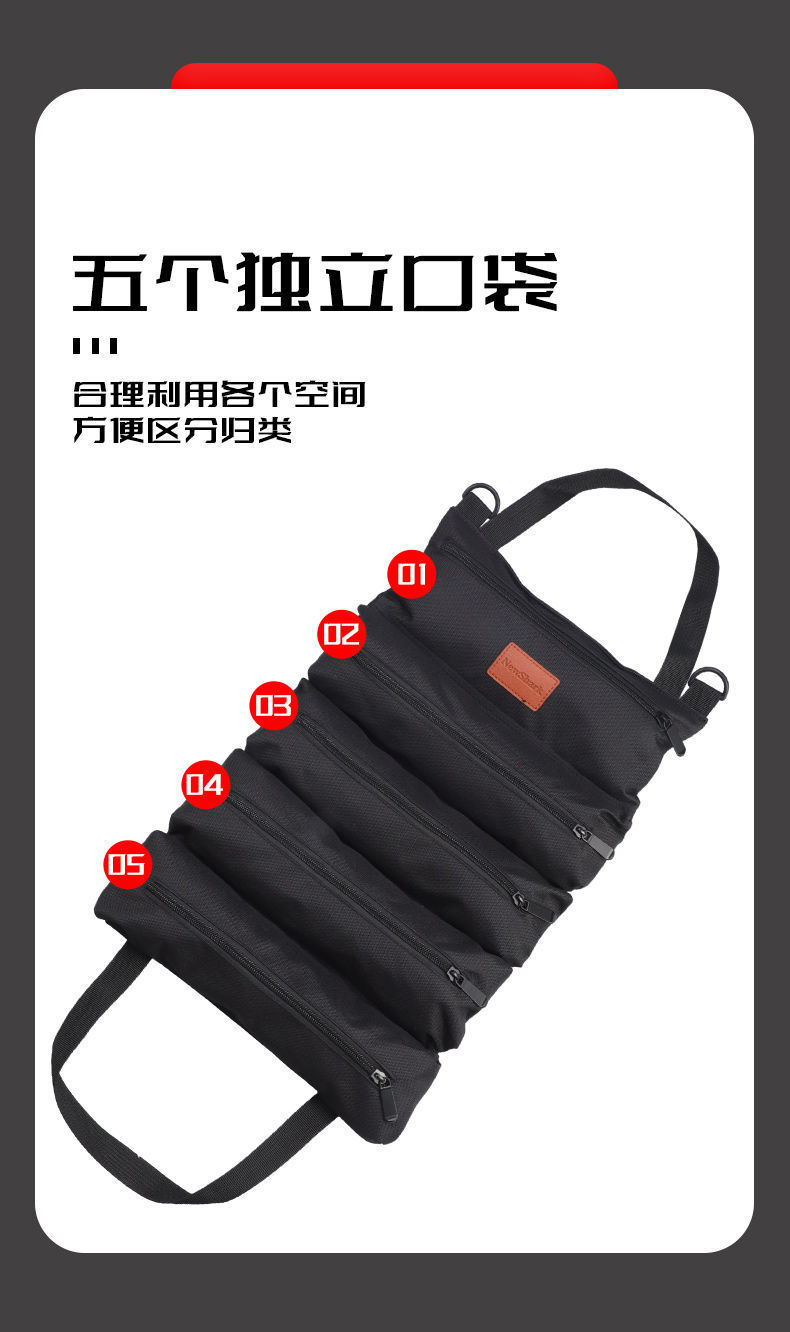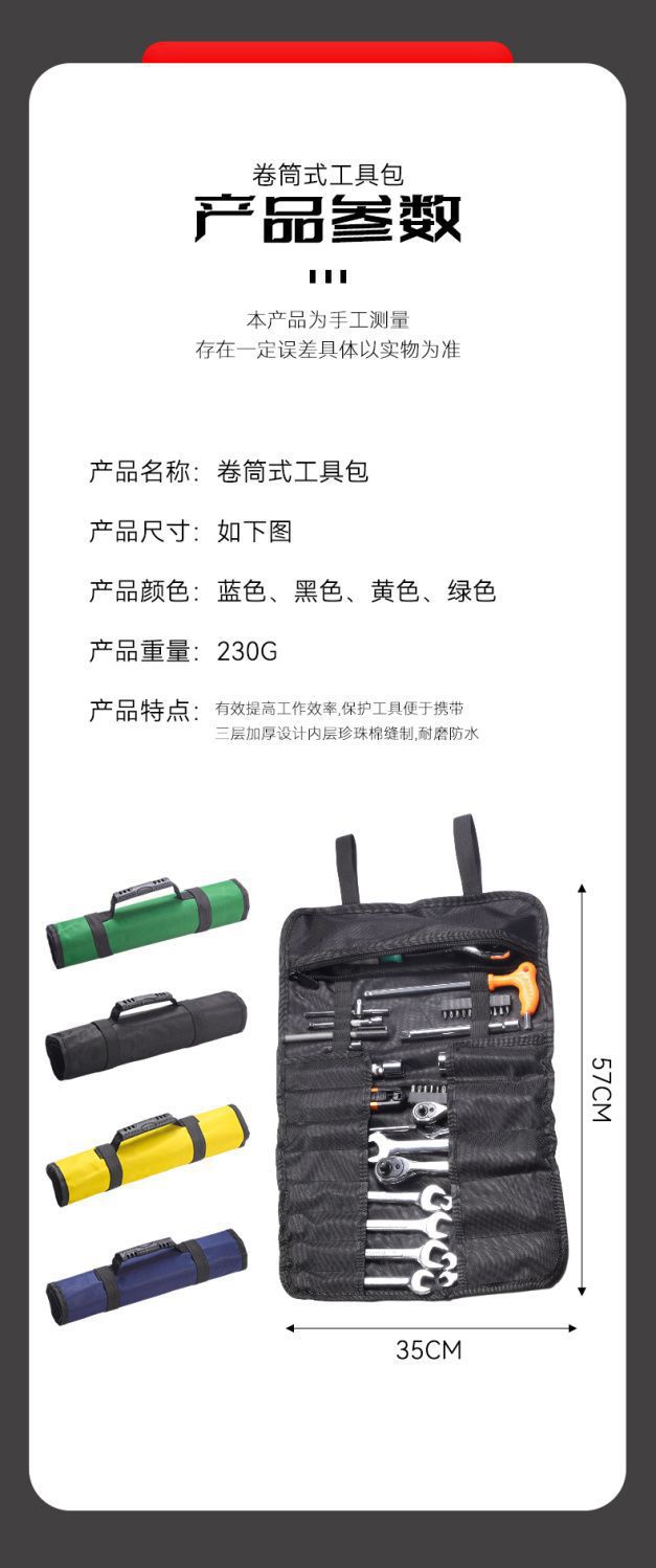 Kit de herramientas de gran capacidad de rollo portátil para el sitio de construcción, kit de herramientas de bolsa de hardware engrosado y reforzado de tela Oxford para el hogar
