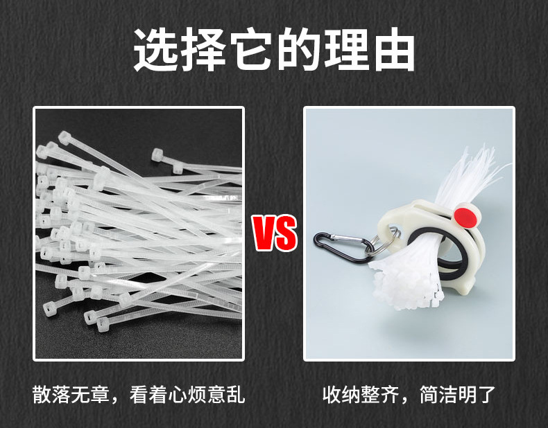 Organizador de bridas de nylon blanco portátil transfronterizo, organizador de bridas fluorescentes con bloqueo universal de un clic