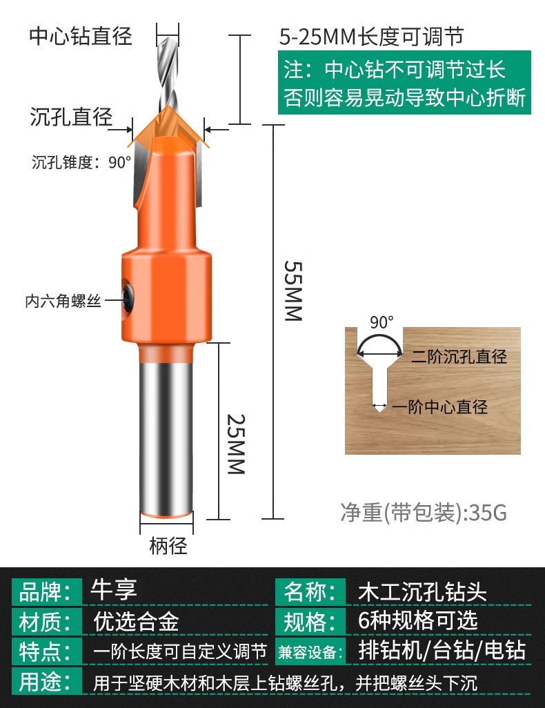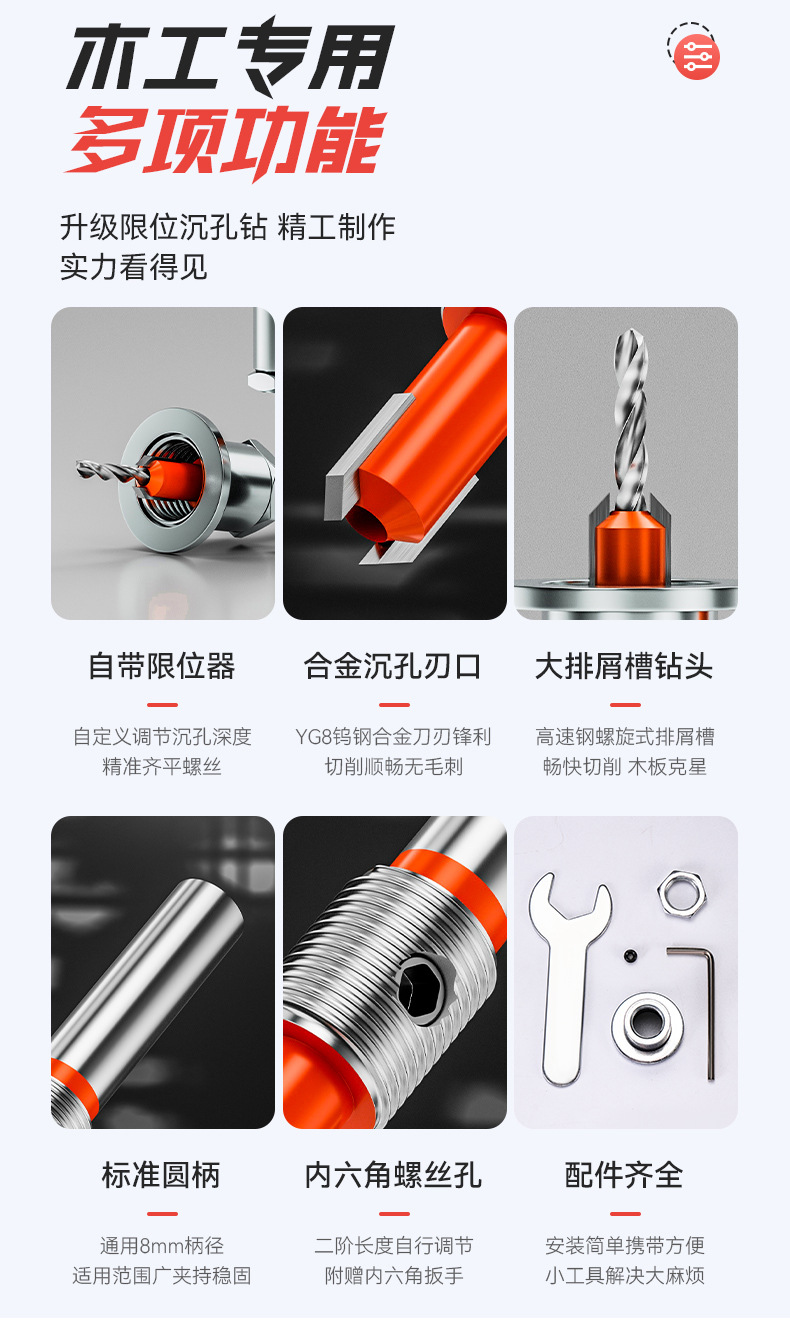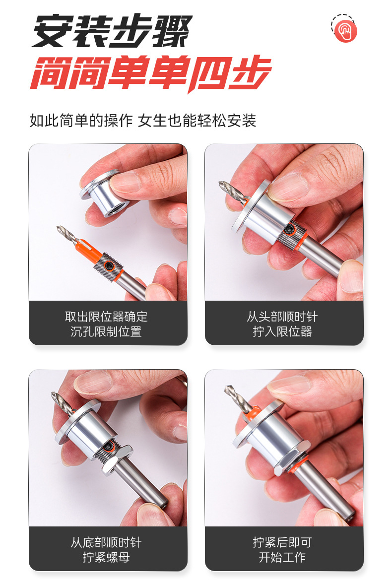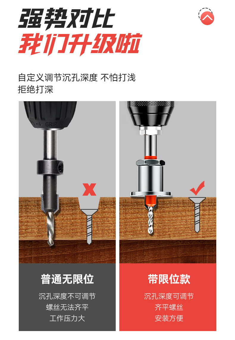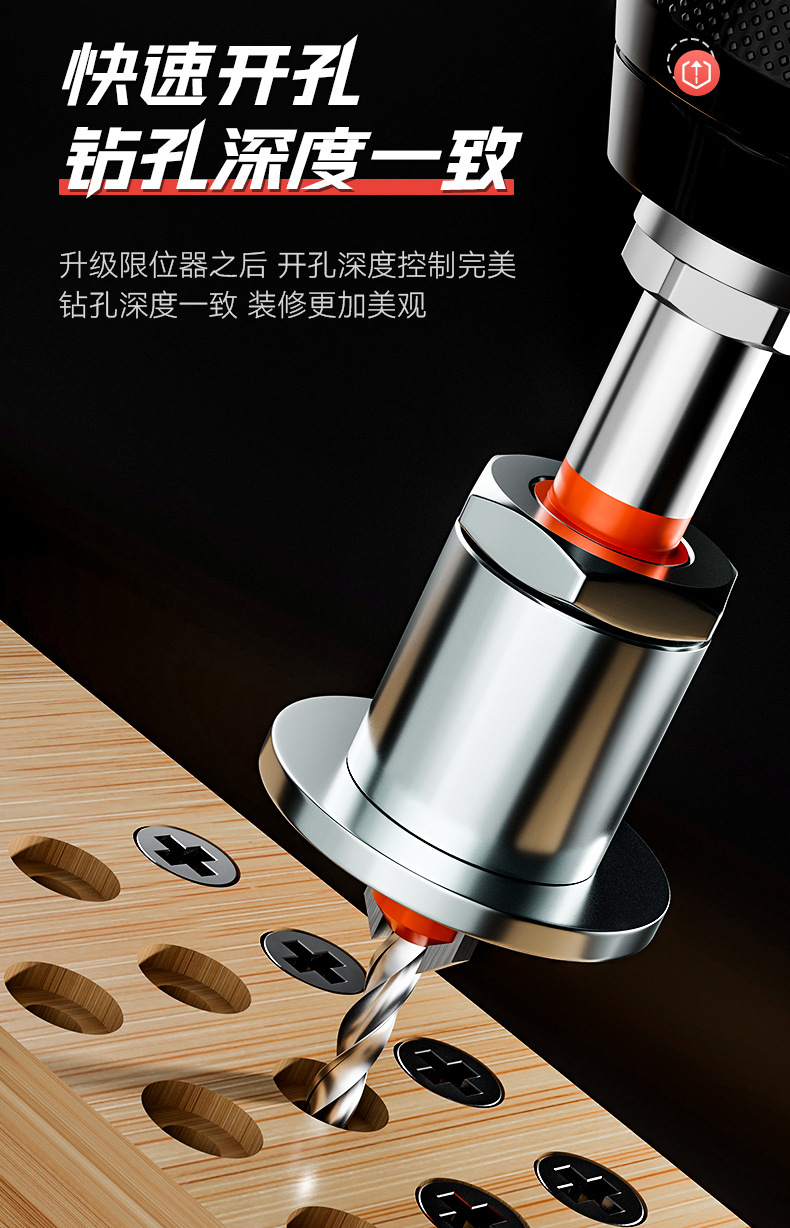 Nuevas herramientas de decoración transfronterizas, taladro de contrabeso, nuevo taladro de contrabeso 2 - en - 1 con limitador, taladro de contrabeso de apertura de carpintería