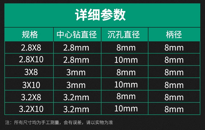 | Modelo | 2.8 * 8mm, 3.0 * 8mm, 3.2 * 8mm, 3.5 * 8mm, 4.0 * 8mm, núcleo de perforación 2.8mm, núcleo de perforación 3.0mm, núcleo de perforación 3.2mm, núcleo de perforación 3.5mm, núcleo de perforación 4.0mm, perforación de perforación |