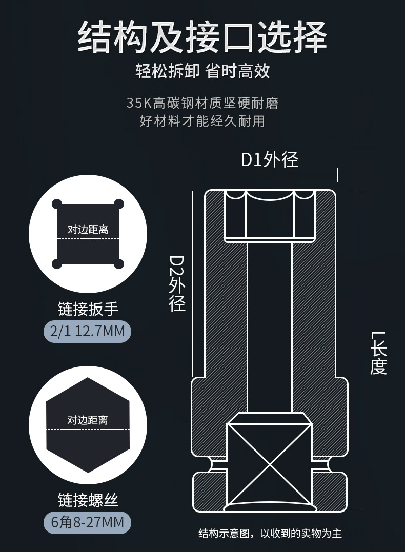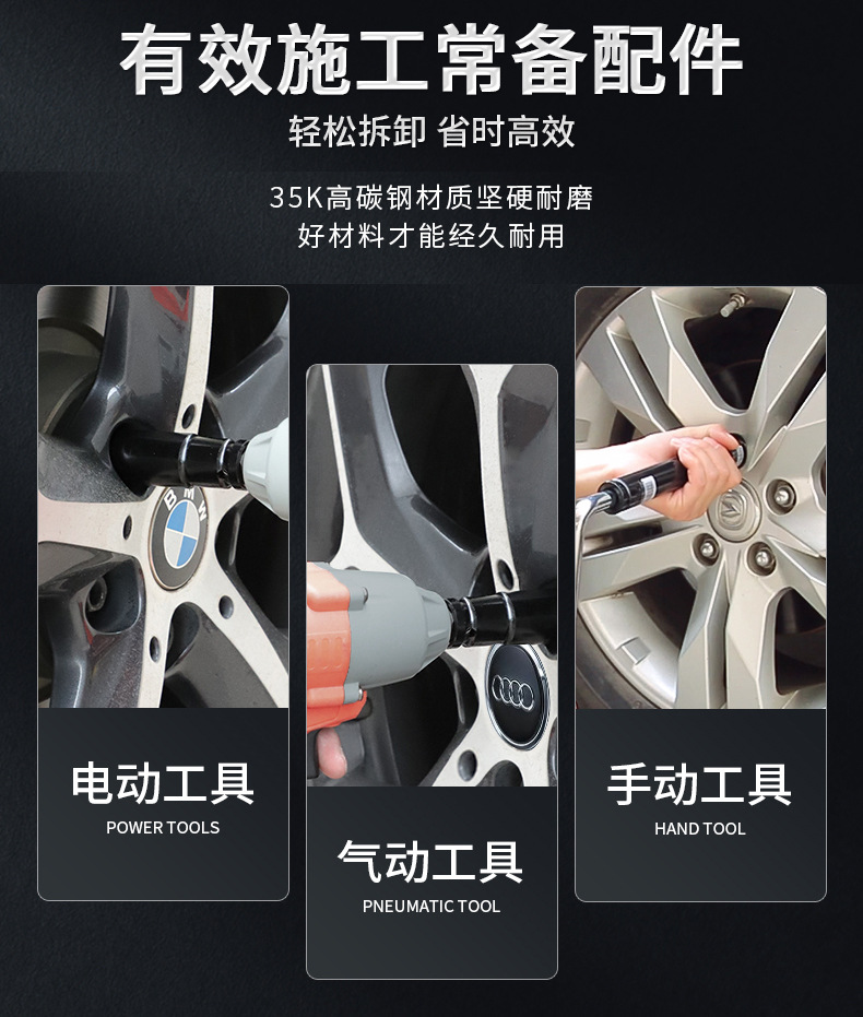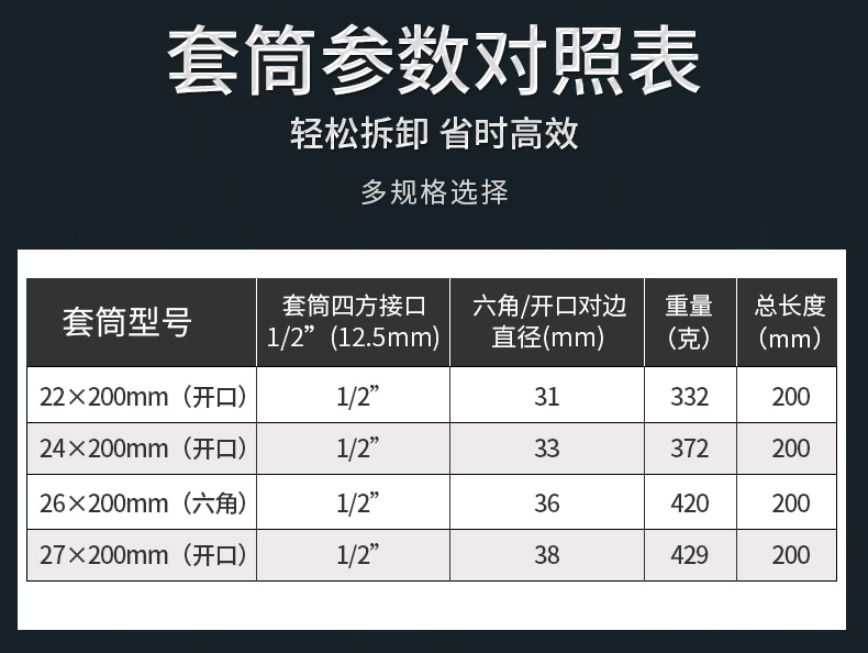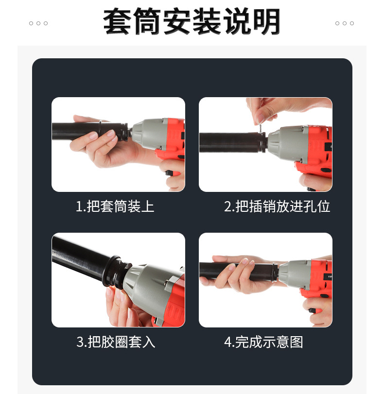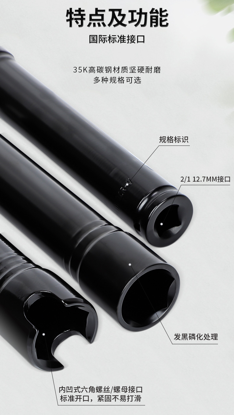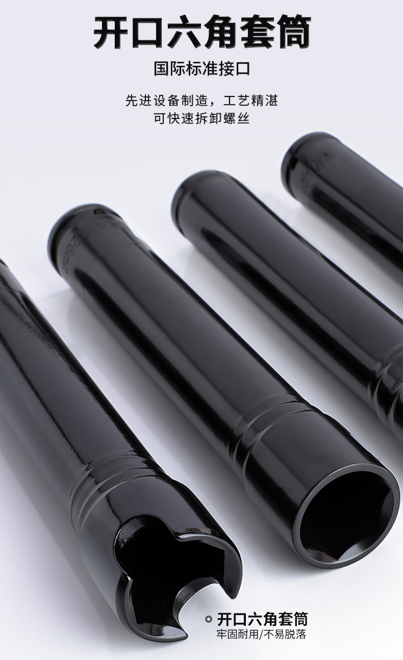 Un conjunto completo de 200 mm de engrosamiento llave eléctrica manguito de extensión abierto cañón de viento hexagonal manguito de extensión