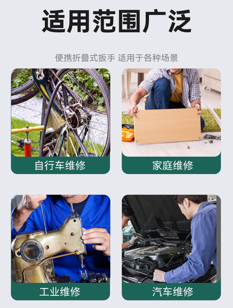 Llave plegable hexagonal inglesa combinada, llave plegable multifuncional portátil de alta dureza doméstica