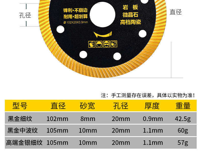 Película de corte de baldosas de cerámica universal de alta dureza y sin bordes rotos, pieza de corte ranurada de amoladora angular multifuncional resistente al desgaste