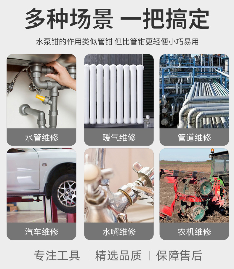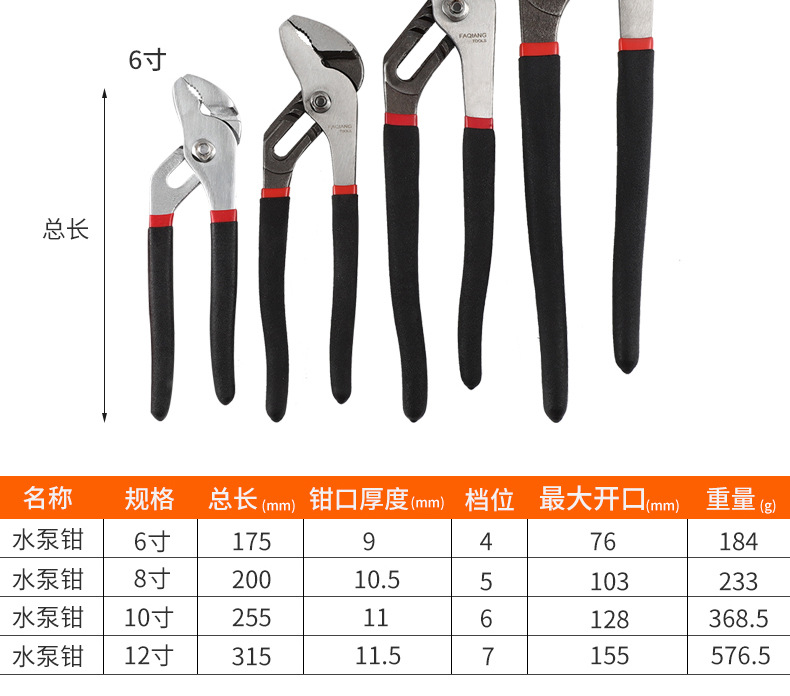 Alicates universales multifuncionales ajustables, alicates de bomba de agua para herramientas, alicates de bomba de agua de acero al carbono de apertura grande mini de grado industrial de 6 pulgadas