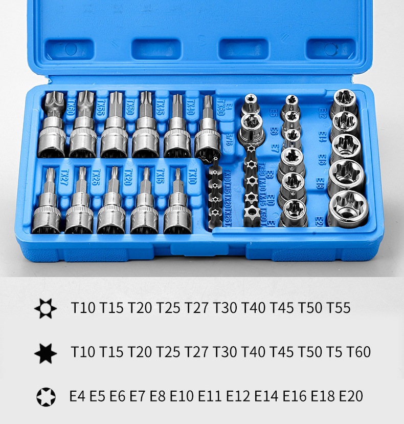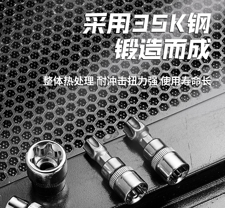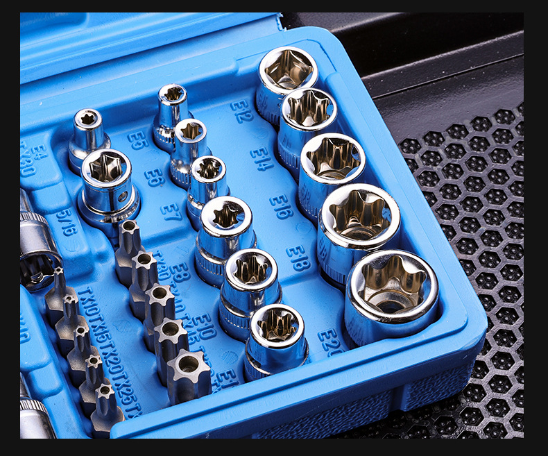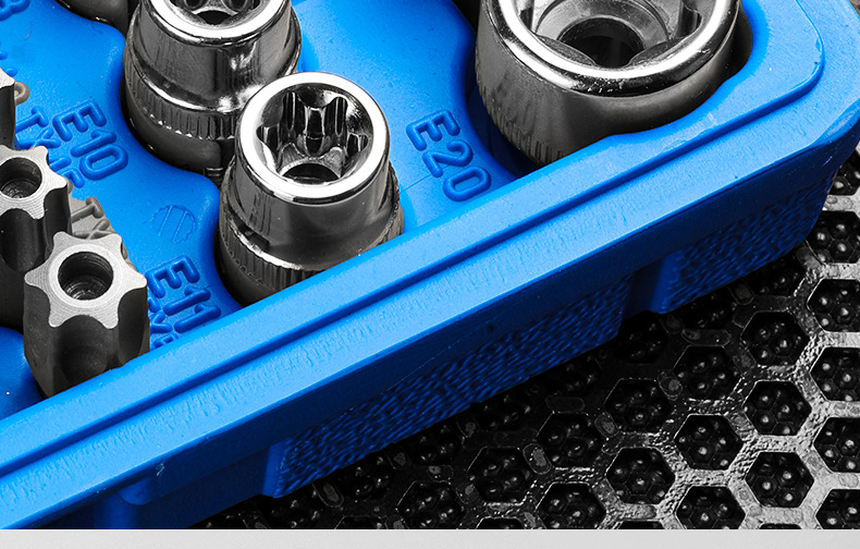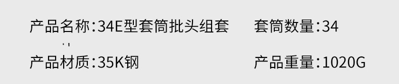 Nuevo juego de cabeza de serie de manga de herramienta eléctrica transfronteriza Tipo E Zhongfei Juego de 34 piezas de manga de taladro eléctrico de mano Juego de cabeza de serie