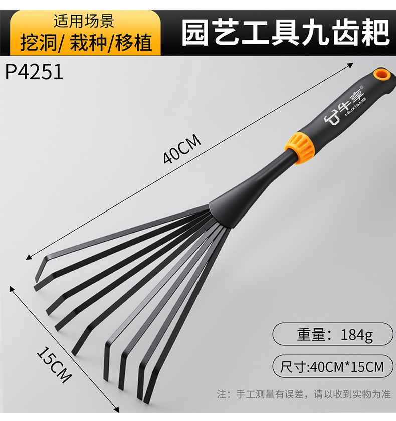 | Especificaciones | Pala de tierra, pala de agujero, pala de tridente, azada cuadrada, rastrillo de tres dientes, rastrillo de cinco dientes, rastrillo de nueve dientes, arranque, azada de doble uso, 3 juegos [modelo a], 3 juegos [modelo b], 3 juegos [modelo c], 5 juegos, 6 juegos, 7 juegos, 8 juegos, 9 juegos |