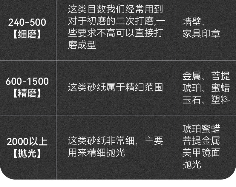 | Modelo | 60 malla [20 hojas],80 malla [20 hojas],100 malla [20 hojas],120 malla [20 hojas],150 malla [20 hojas],180 malla [20 hojas],220 malla [20 hojas],240 malla [20 hojas],280 malla [20 hojas],320 malla [20 hojas],360 malla [20 hojas],400 malla [20 hojas],600 malla [20 hojas],800 malla [20 hojas],1000 malla [20 hojas],1200 malla [20 hojas],1500 malla [20 hojas],2000 malla [20 hojas],2500 malla [20 hojas],2500 malla [1 hoja] |