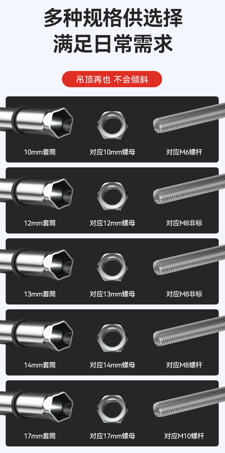 manga de ajuste de techo de quilla de acero ligero alta dureza 17mm alargada manga de ajuste de techo de madera hexagonal