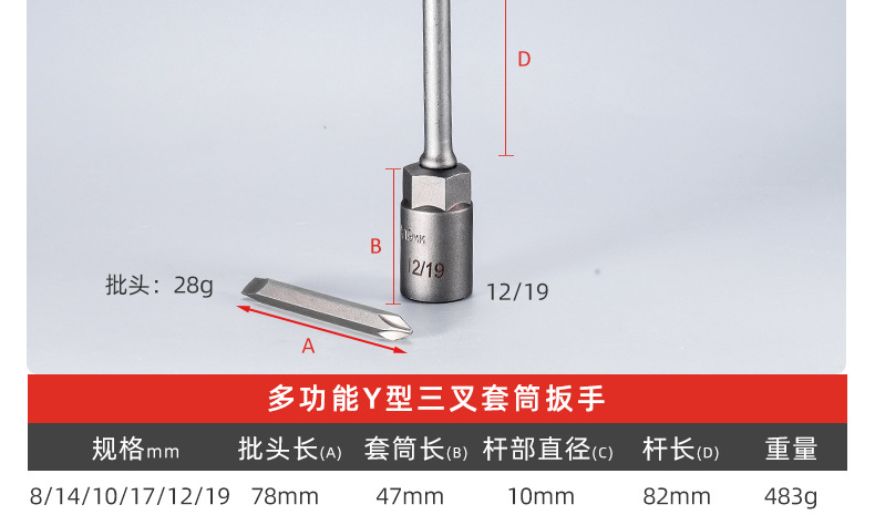 Llave de tubo de tres puntas en forma de Y multifuncional Lavadora triangular corta universal Desmontaje Llave de tubo de tres puntas