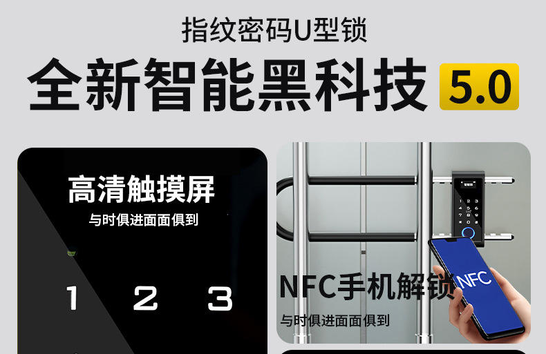 ![[Source Factory] Bloqueo de contraseña Bluetooth Puerta de vidrio Candado electrónico en forma de U Cerradura de puerta doble push-up Cerradura de huella digital inteligente](https://cbu01.alicdn.com/img/ibank/O1CN01BrZ3oX2LrGjCergzG_!!3844389745-0-cib.jpg)