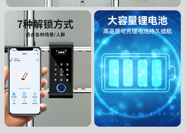 ![[Source Factory] Bloqueo de contraseña Bluetooth Puerta de vidrio Candado electrónico en forma de U Cerradura de puerta doble push-up Cerradura de huella digital inteligente](https://cbu01.alicdn.com/img/ibank/O1CN01Ah84e62LrGjEJTW1q_!!3844389745-0-cib.jpg)