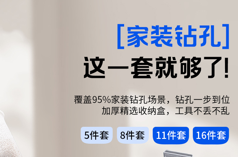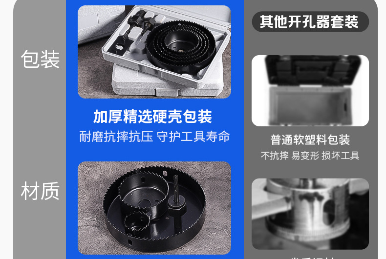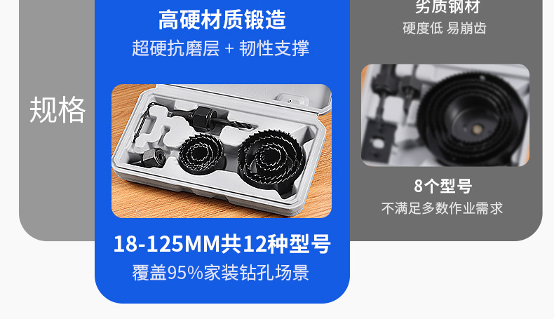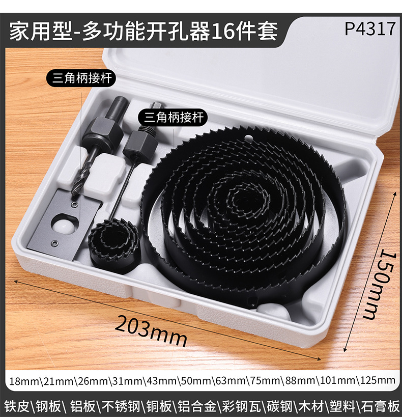 Juego de abridores de agujeros para carpintería Niu Xiang en caja de plástico, juego de abridores de agujeros multifuncionales para el hogar de 16 piezas