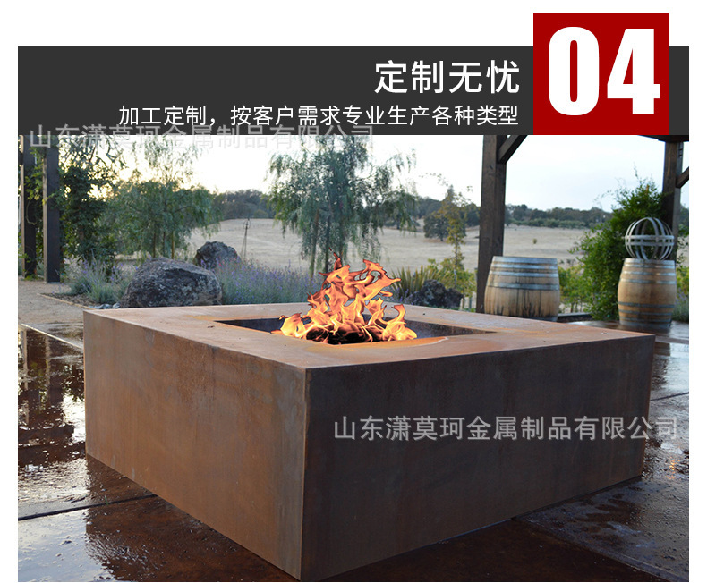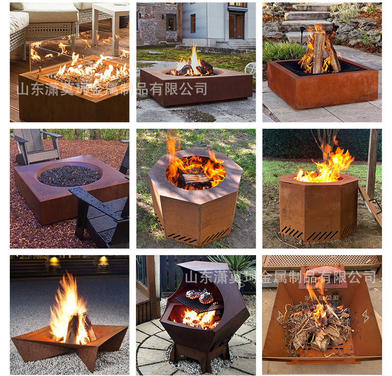 Placa de acero resistente a la intemperie cuenca de fuego de barbacoa de forma especial cuenca de fuego de metal al aire libre cuenca de fuego de placa resistente a la intemperie cuenca de fuego de tazón