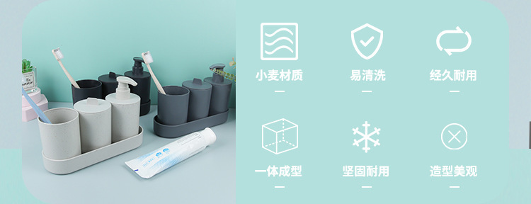 Baño nórdico de 3 piezas set de trigo simple artículos de baño baño taza de baño set de lavado de dientes