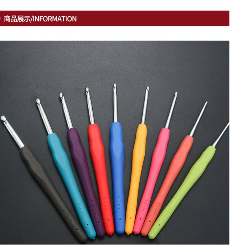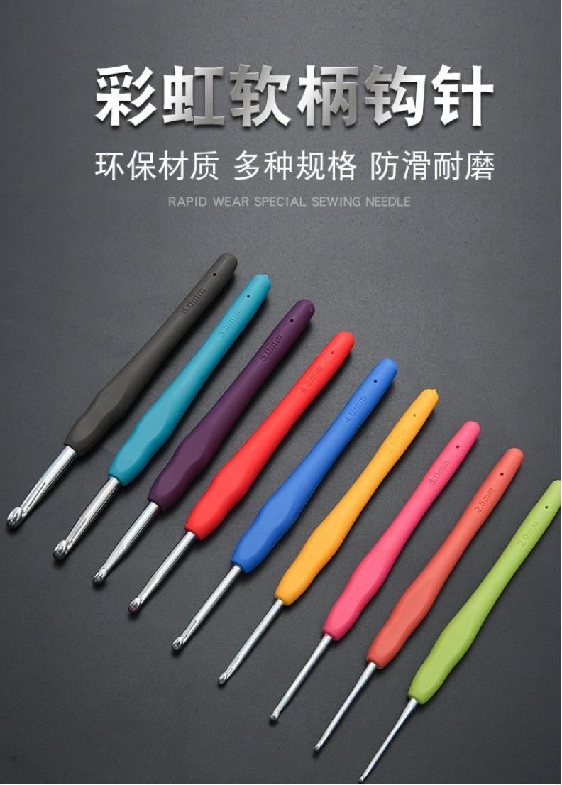 Venta caliente transfronteriza, ganchillo de mango suave de color, herramienta tejida a mano, ganchillo de aluminio de mango suave, fabricante de agujas de lana de silicona de alta calidad
