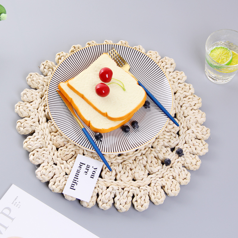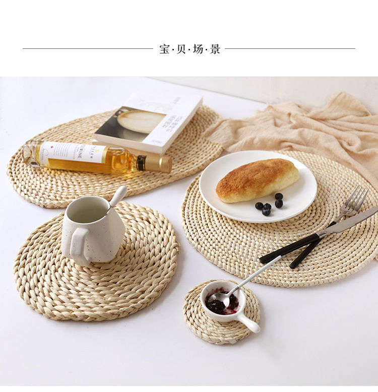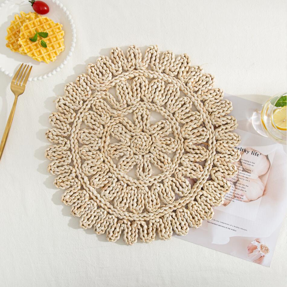 Casas transfronterizas de corteza de maíz natural tejida a mano más almohadilla de mesa de té aislante de calor mortero resistente al calor almohadilla de platos de taza