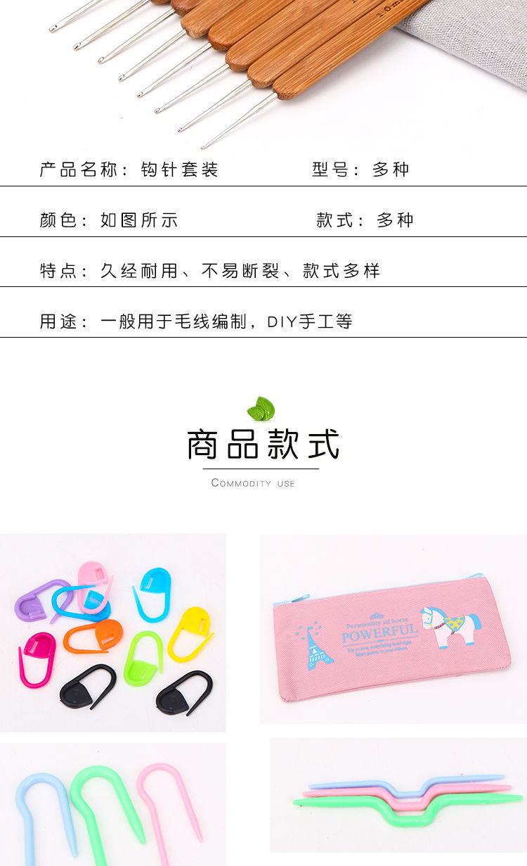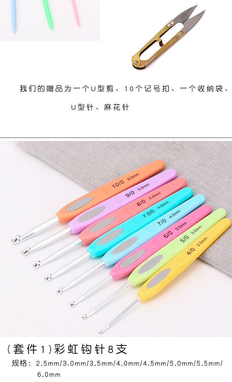 Traje de herramienta de ganchillo tejido a mano aguja de palo de lana marca de aguja hebilla aguja de giro con bolsa de almacenamiento aguja de gancho de aluminio
