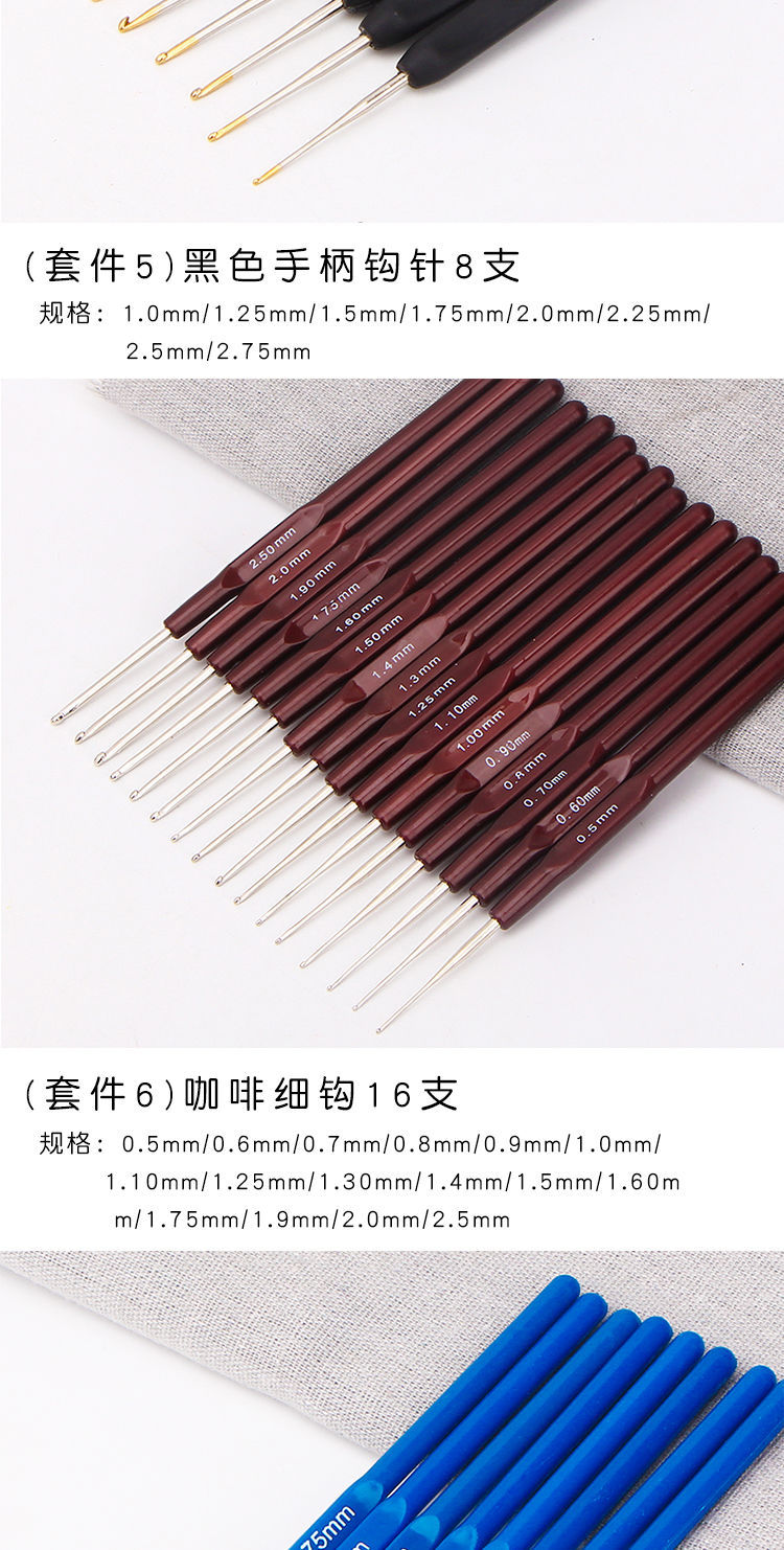 | Color | Traje 8 ganchos de ganchillo de color (obtener traje gratis),Rose Red handle crochet suit 8 piezas (traje tejido libre),Color caramelo crochet traje 9 piezas (obtener traje gratis),Traje 8 ganchos de ganchillo negro (traje gratis),Traje ganchos de bambú (traje gratis),Candy crochet suit 9 piezas (Get suit for free),Traje de gancho de bambú 8 piezas (traje tejido libre),Traje arco iris de ganchillo de metal ganchos (traje gratis),Traje 22 ganchos de ganchillo de metal (traje gratis),Cinco de doble cabeza traje de ganchillo,Traje de ganchillo de plástico de color (traje tejido libre),Color mango de plástico cabeza de hierro traje de ganchillo (traje tejido libre),2,0 + 2,5mm 2 (traje),2,5 + 3,0 2 piezas (obtener traje gratis),3,0 + 3,5 2 piezas (obtener traje gratis),3,5 + 4,0mm 2 piezas (obtener traje gratis),4,0 + 4,5mm 2 piezas (obtener traje gratis),4,5 + 5,0 2 piezas (obtener traje gratis),5,0 + 5,5mm 2 piezas (obtener traje gratis),Traje de gancho grueso (tijeras de hilo libre + regalos + Embalaje) |
