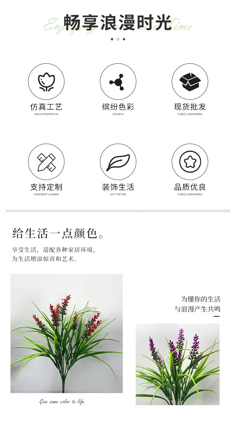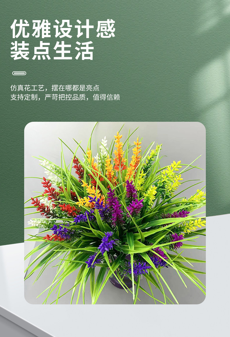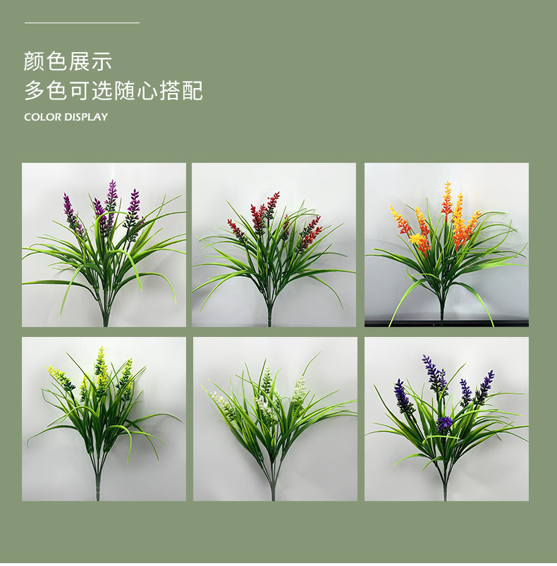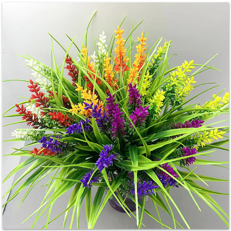7 plantas de primavera de lavanda flores falsas flores de imitación decoración de decoración de boda sala de estar hotel comedor