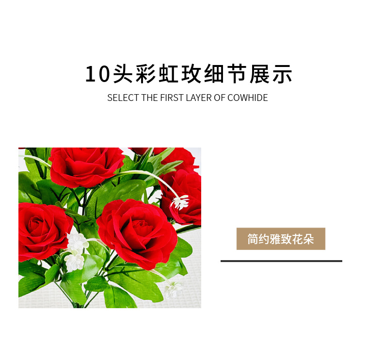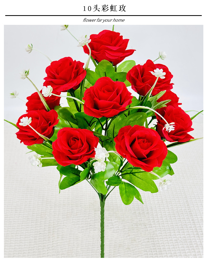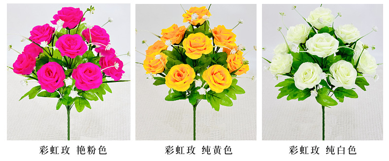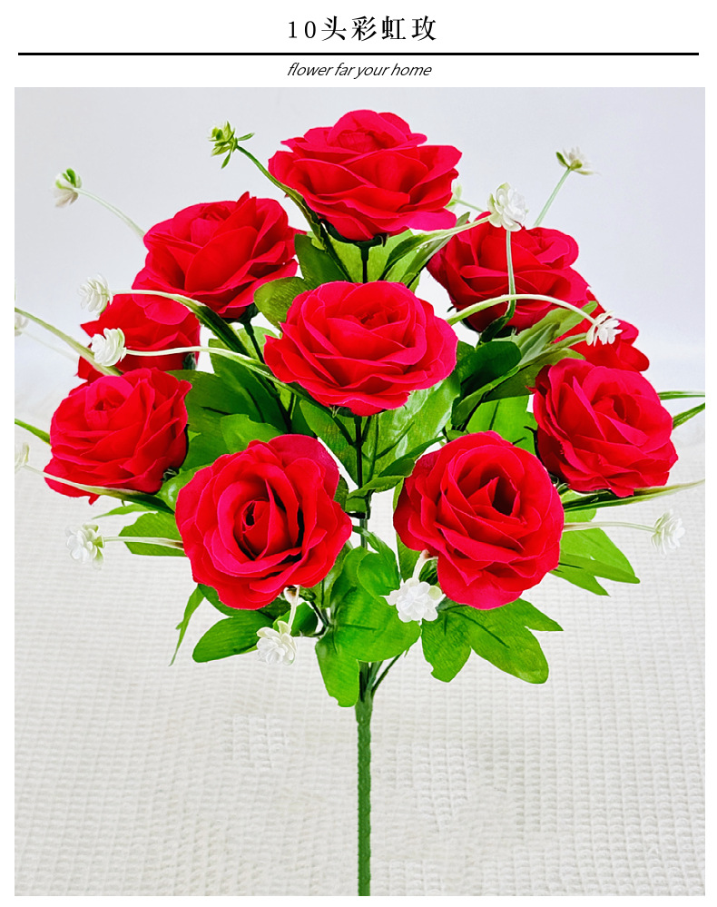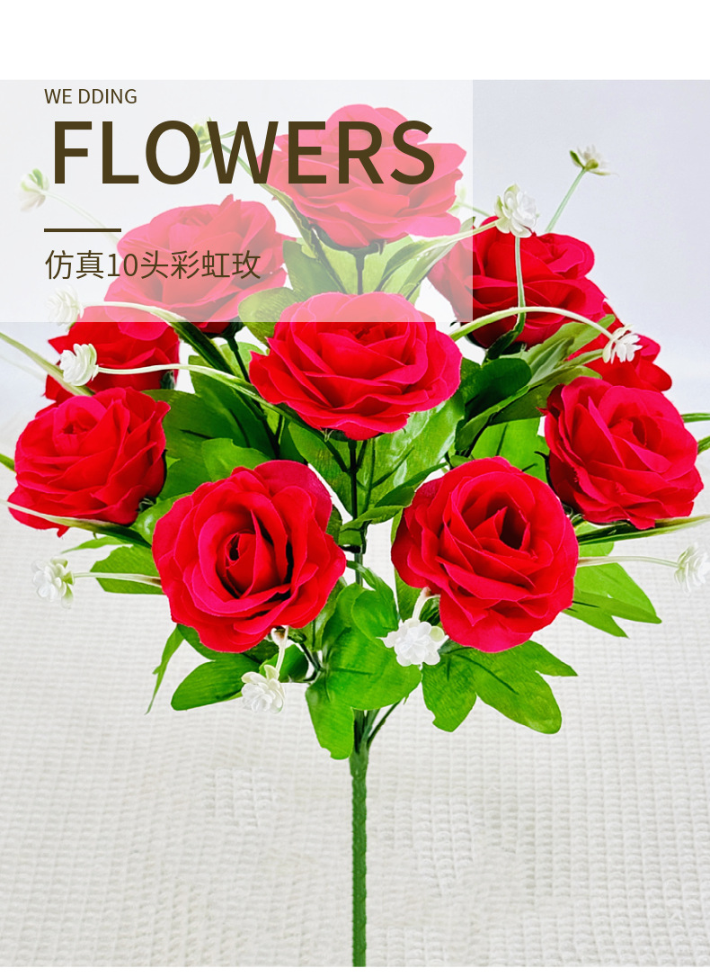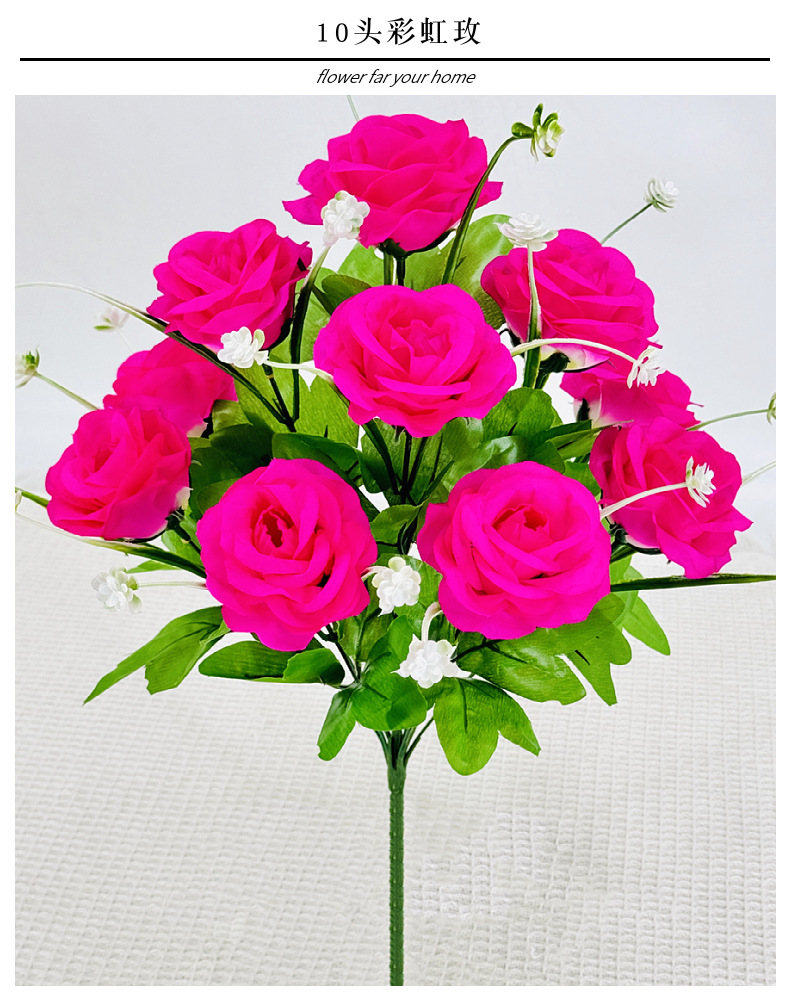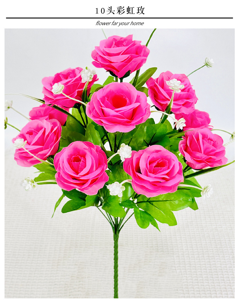 10 flores de rosa arcoíris flores falsas flores de alta calidad decoración de la sala de estar interior ramo de flores decoración de la mesa de comedor del hogar