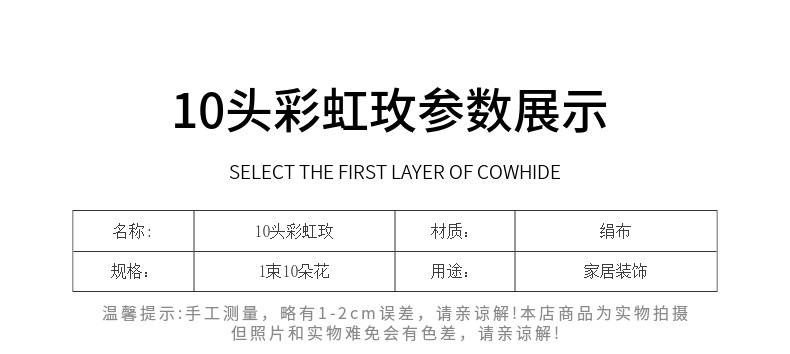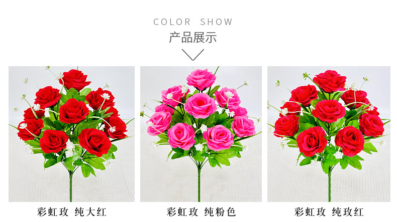 | Color | Diez rosas arcoíris son de color rojo puro, diez rosas arcoíris son de color rosa puro, diez rosas arcoíris son de color rosa puro, diez rosas arcoíris son de color amarillo puro, diez rosas arcoíris son de color blanco puro, diez rosas arcoíris son de color rojo oscuro, diez rosas arcoíris son de color champán, diez rosas arcoíris son de color azul, diez rosas arcoíris son de color champán. |
