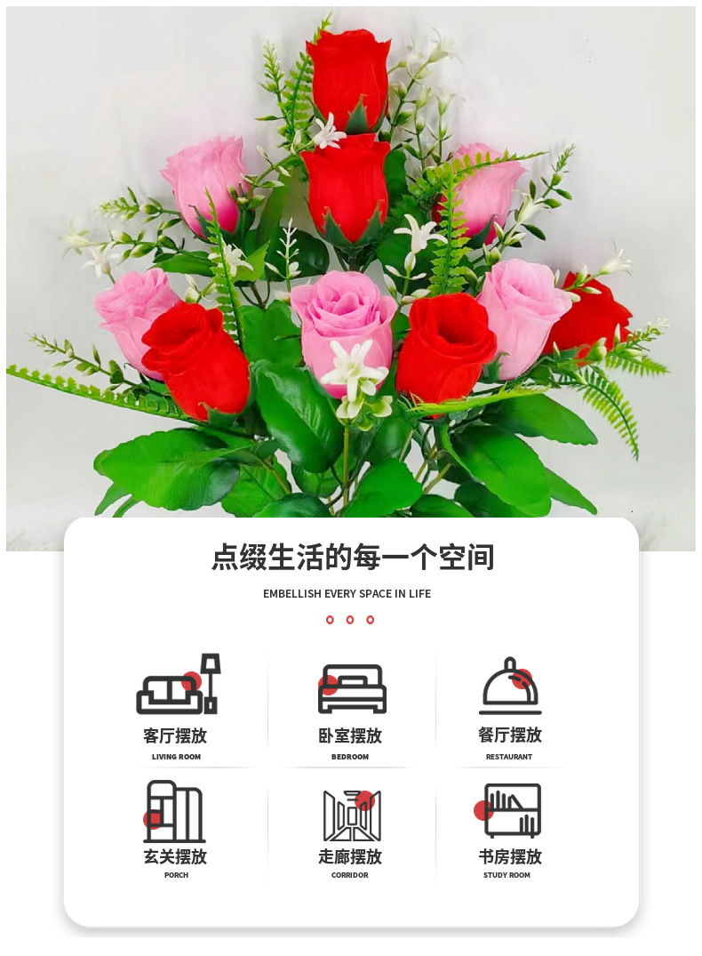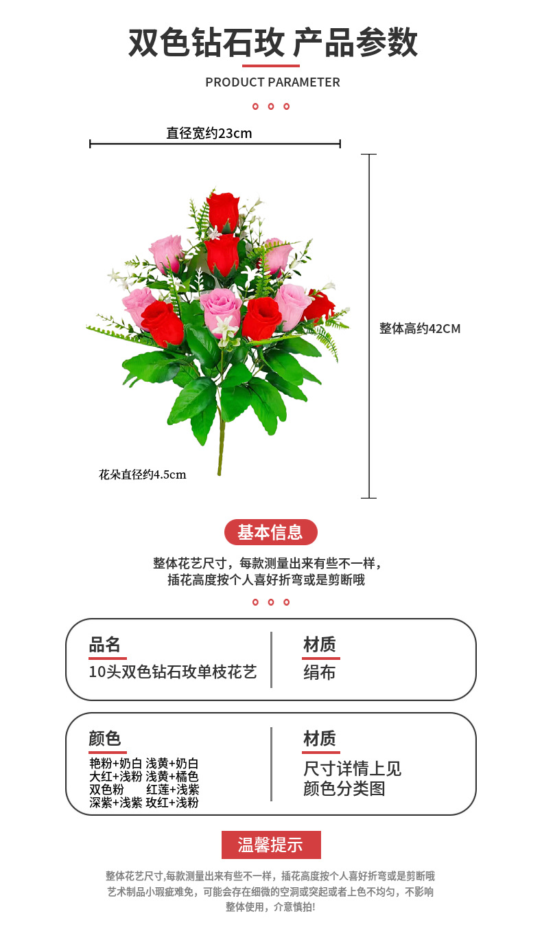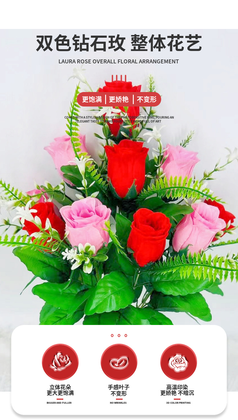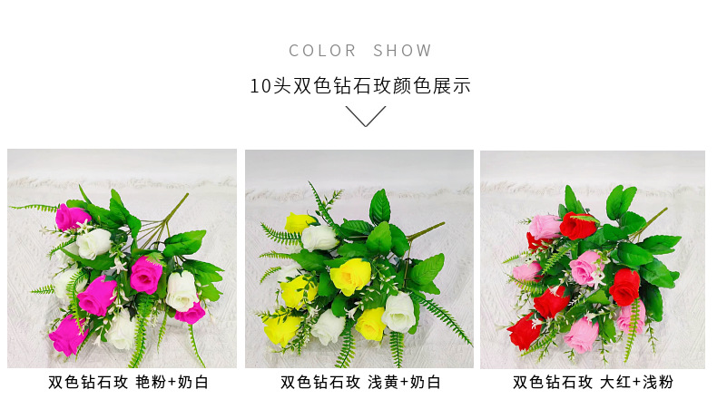 Rosa Artificial de Diamante de 10 Tallos, Dos Colores, para Decoración de Salón, Estilo Ins