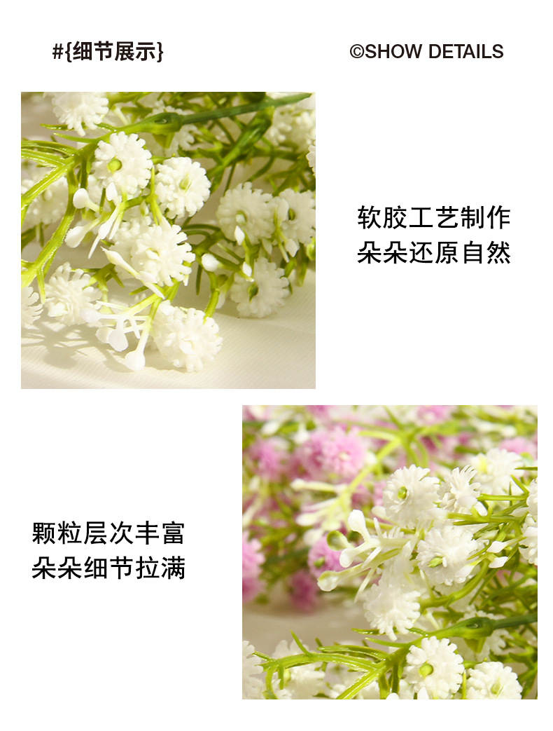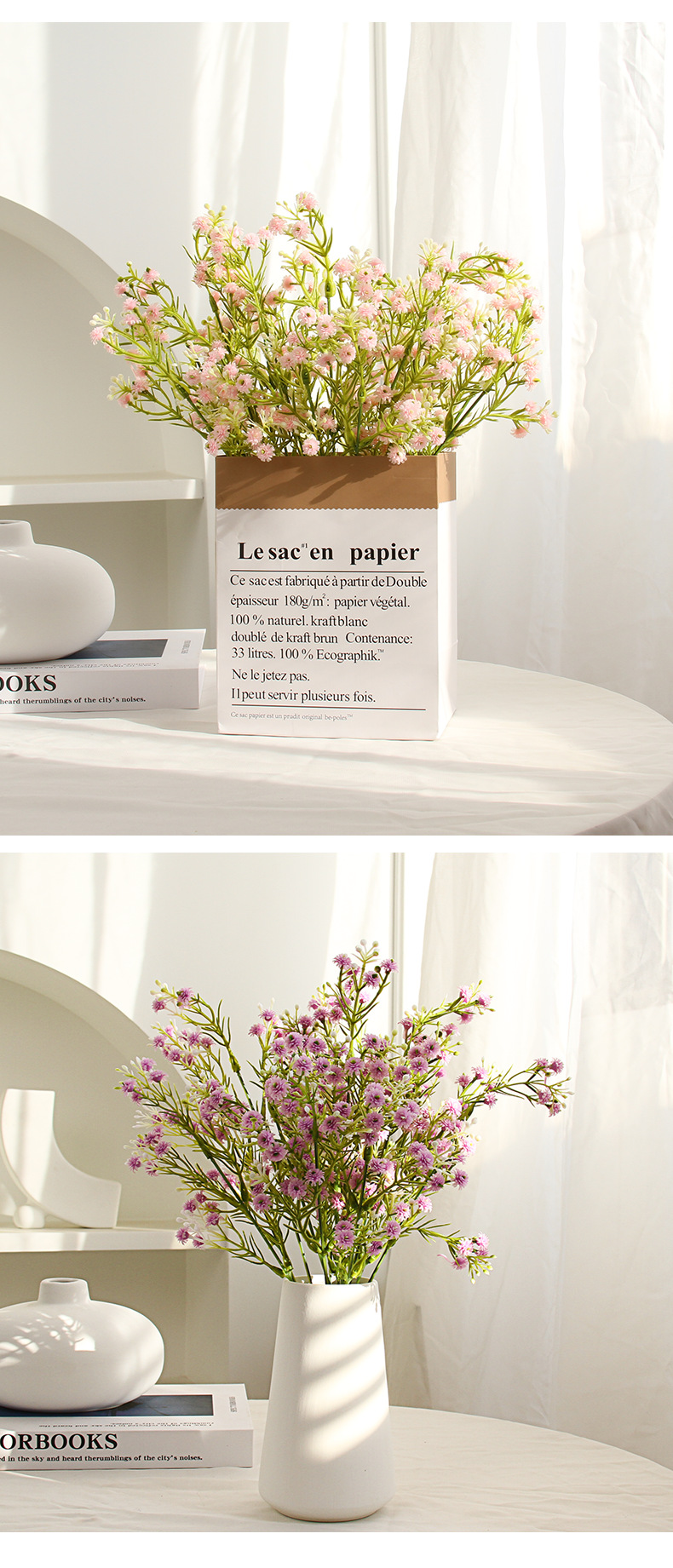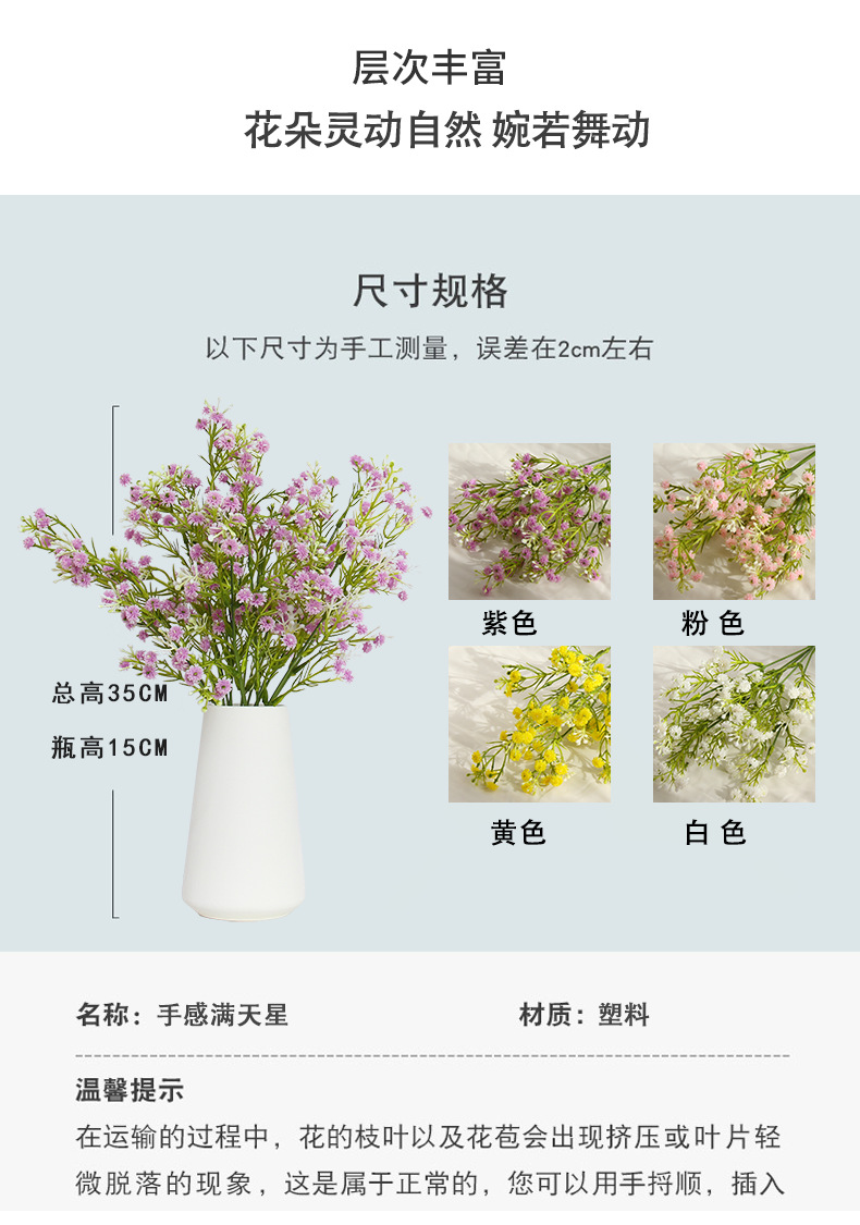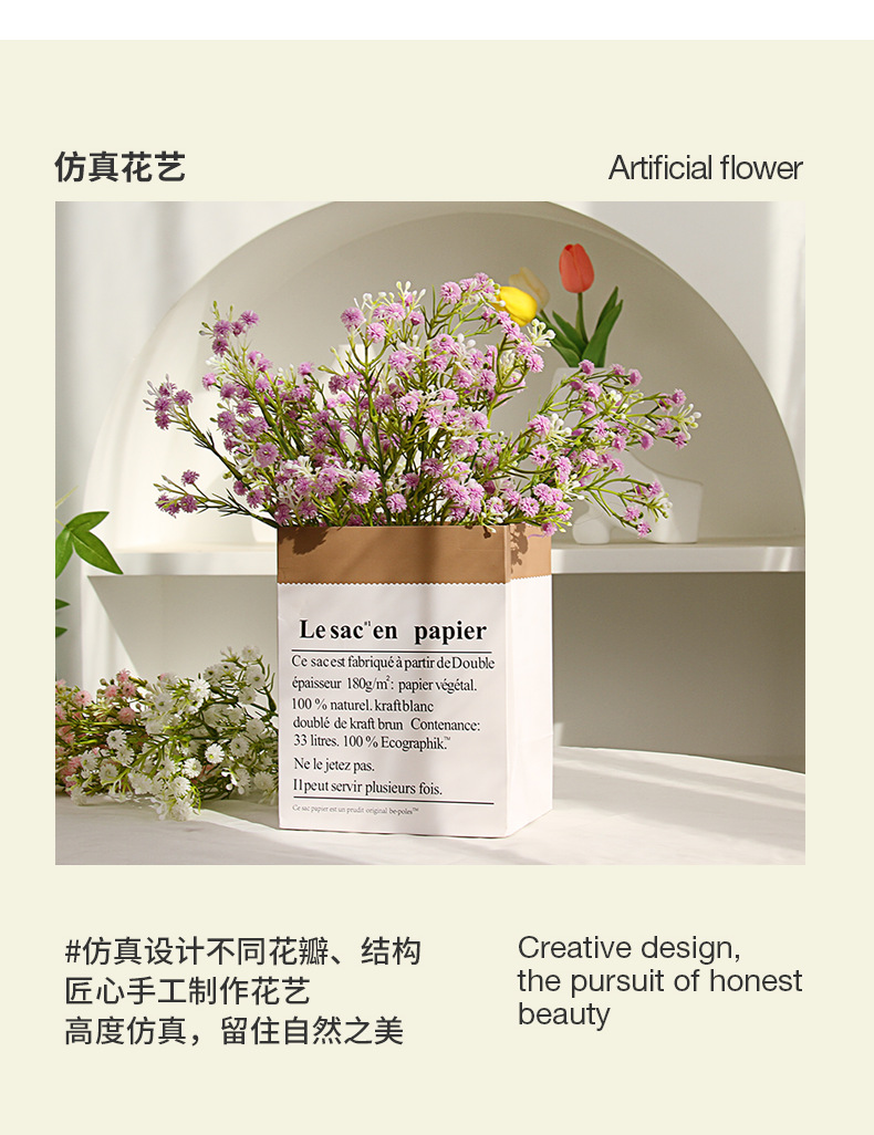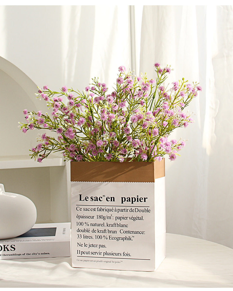 | Color | Un ramo de blanco, un ramo de rosa, un ramo de morado, un ramo de amarillo, un ramo de azul, 3 ramos de color mixto + bolsa de papel francesa, 3 ramos de blanco + bolsa de papel francesa, 3 ramos de morado + bolsa de papel francesa, 3 ramos de blanco + jarrón de cerámica cónica, 3 ramos de Rosa + jarrón de cerámica cónica, 3 ramos de morado + jarrón de cerámica cónica |