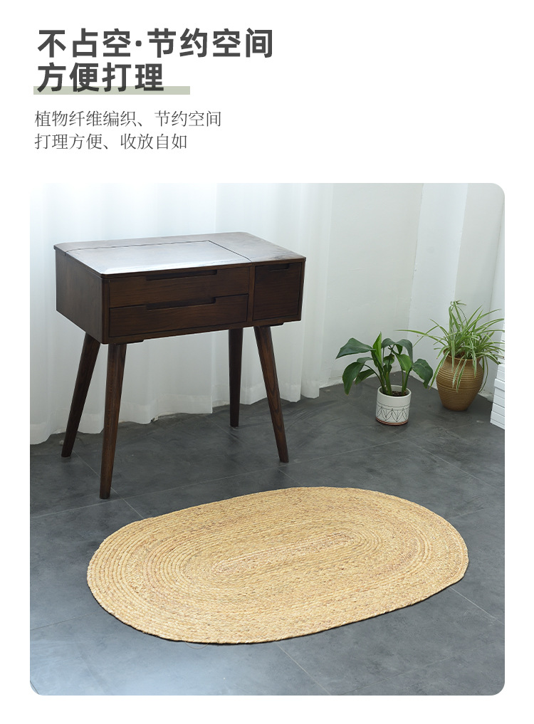 Alfombra de piso tejida de ratán, alfombra ovalada de paja, alfombra redonda de paja tejida para dormitorio, alfombra para casa de huéspedes, estilo moderno.
