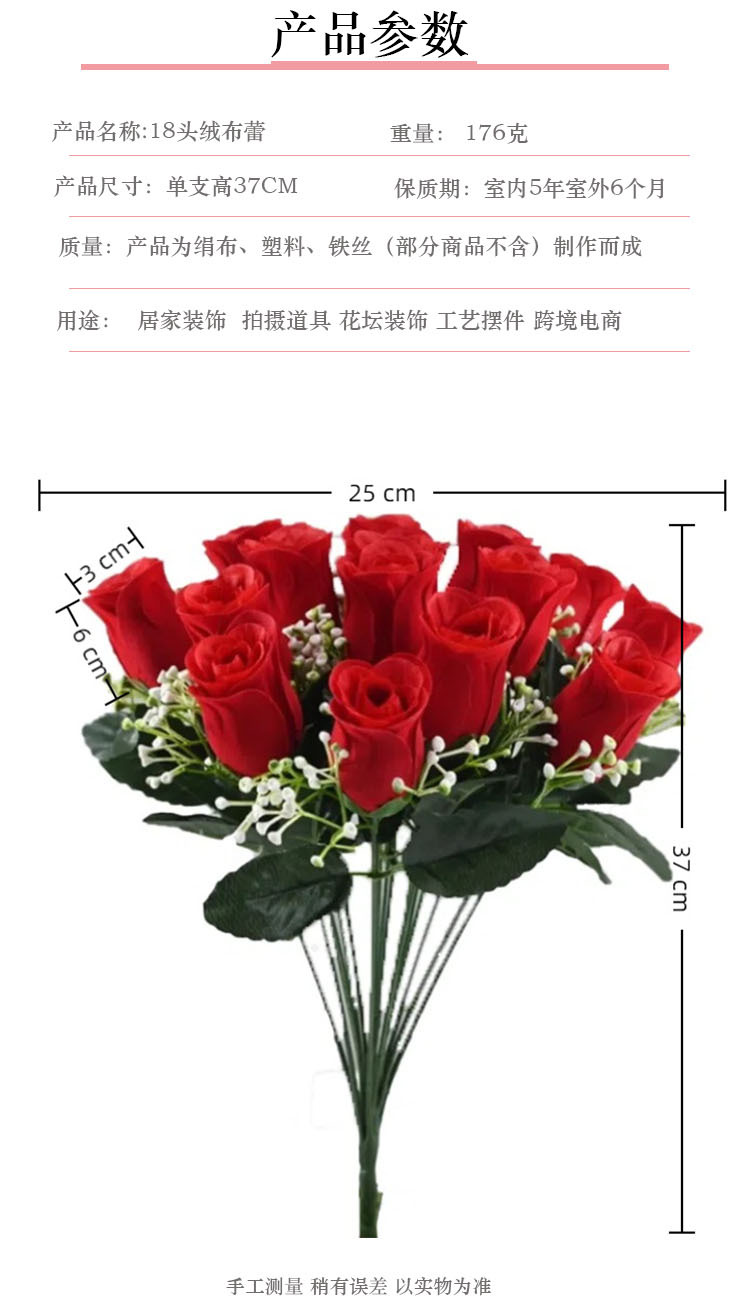 Fuente fabricante simulación rosa venta al por mayor 18 brotes de franela decoración de bodas guía de carretera hilera flor ramo de flores falsas
