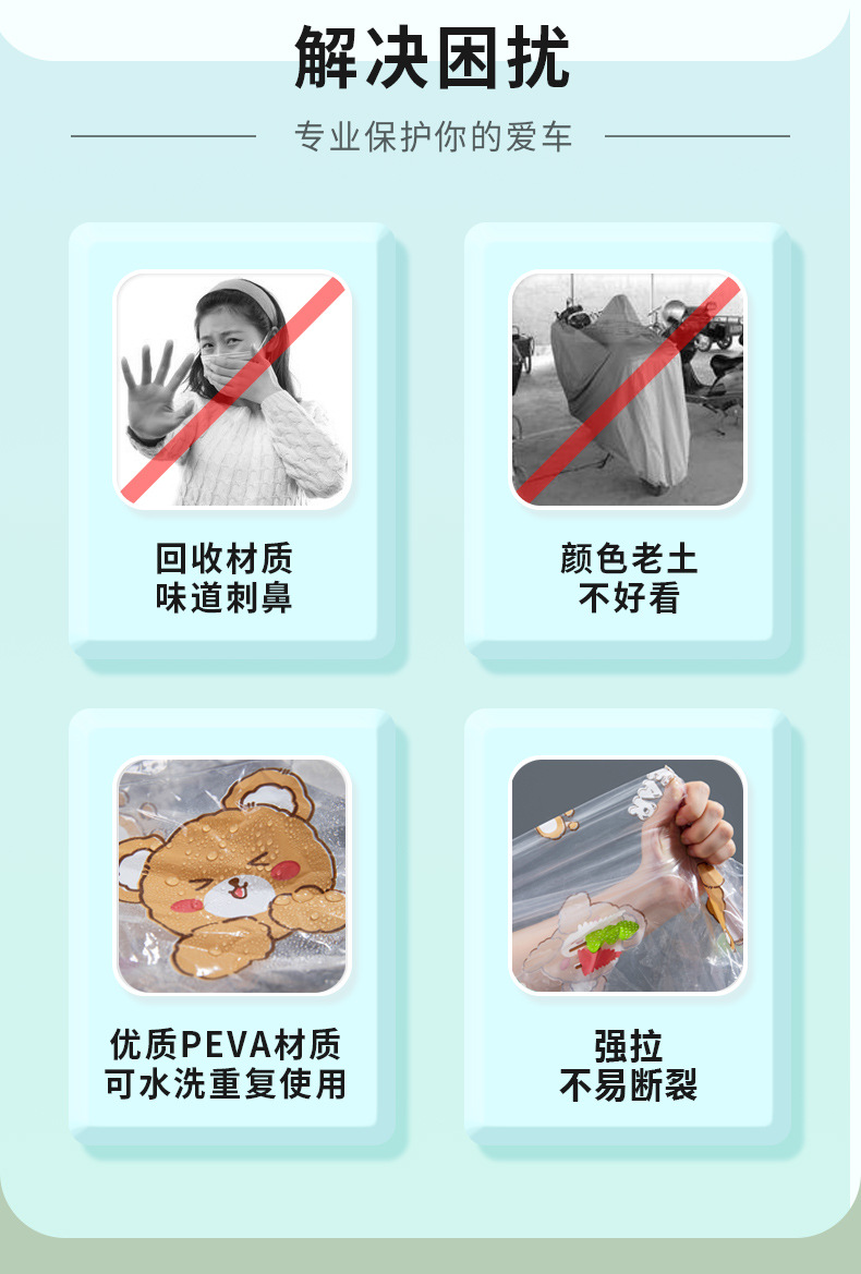 Peva cubierta de lluvia para coche eléctrico Yadi cubierta de polvo universal para coche de batería con cuchillo de corte