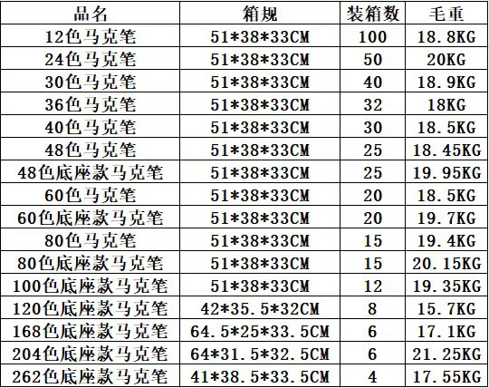 | Especificaciones | Marcador de varilla negra de doble cabeza [12 colores] caja de pvc,Marcador de varilla negra de doble cabeza [24 colores] Bolsa de tela negra,Marcador de varilla negra de doble cabeza [36 colores] Bolsa de tela negra,Marcador de varilla negra de doble cabeza [48 colores] Bolsa de tela negra,Marcador de varilla negra de doble cabeza [60 colores] Bolsa de tela negra,Marcador de varilla negra de doble cabeza [80 colores] Bolsa de tela negra,Base de rotulador de varilla negra de doble cabeza [80 colores] bolsa de tela negra |