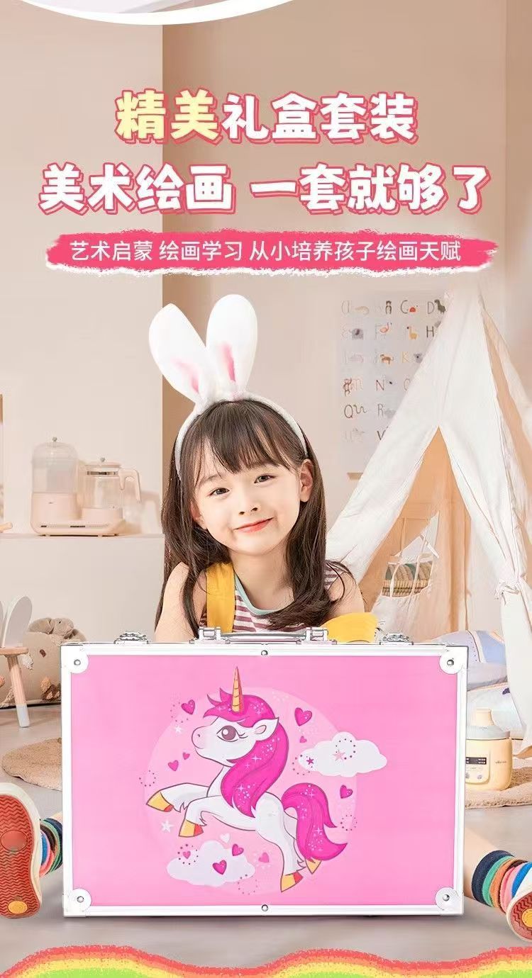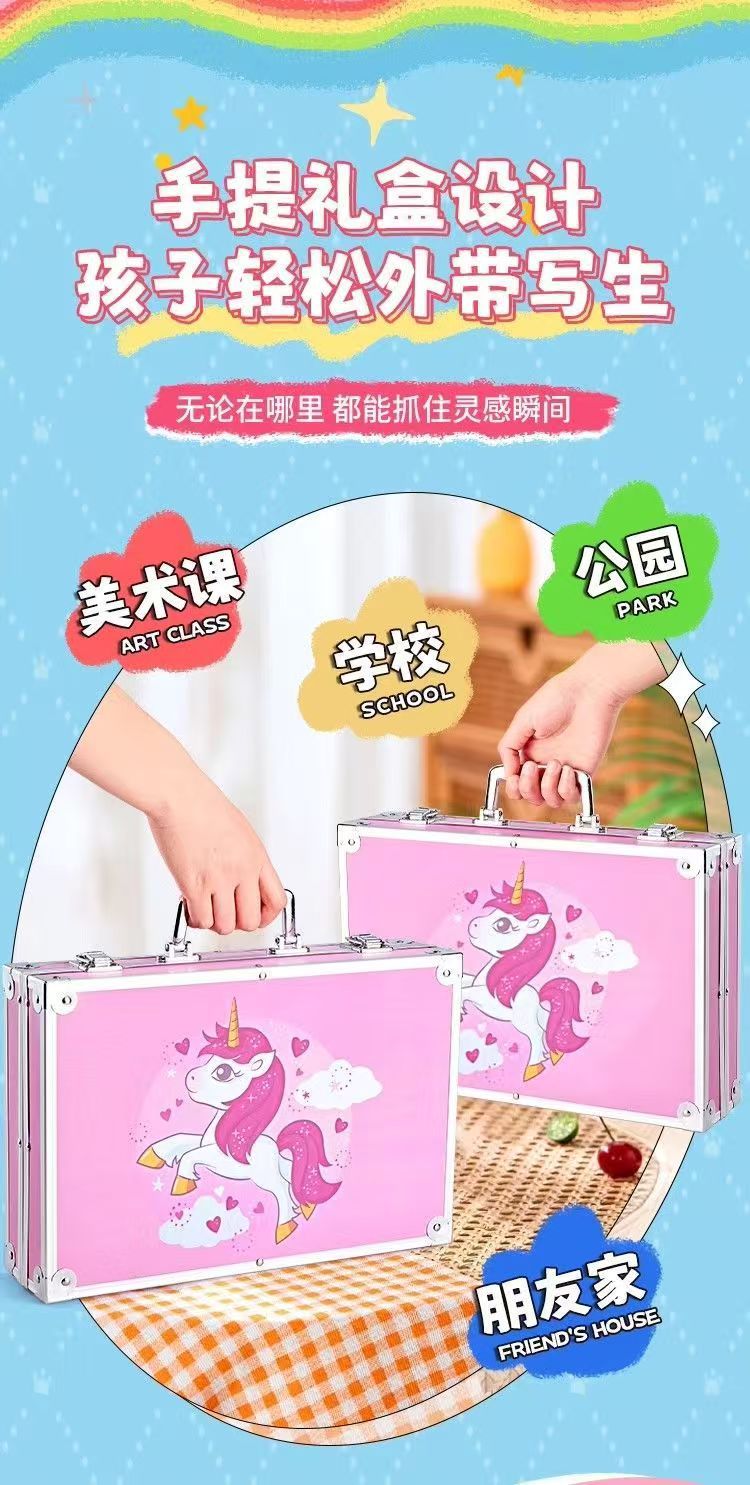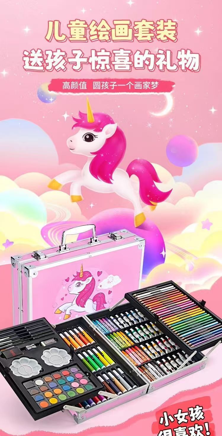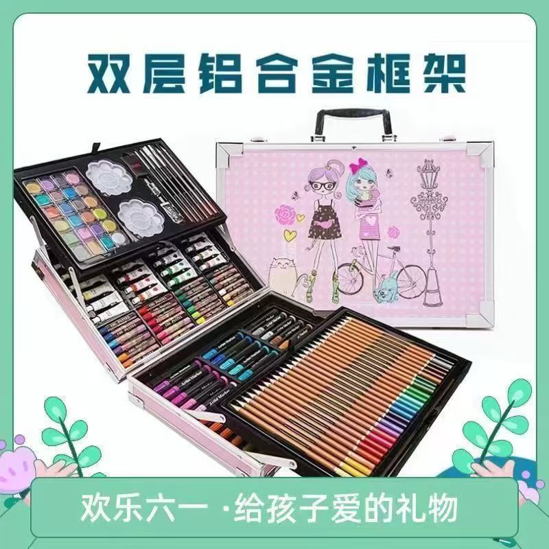 145 caja de aluminio de doble capa, juego de pintura para niños, pincel, acuarela, crayón, pastel al óleo, suministros de arte para estudiantes, caja de regalo