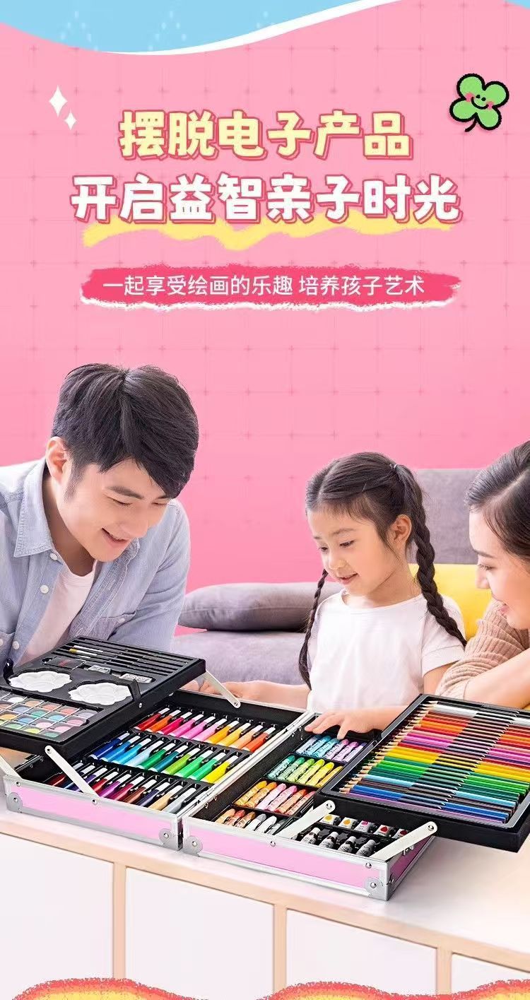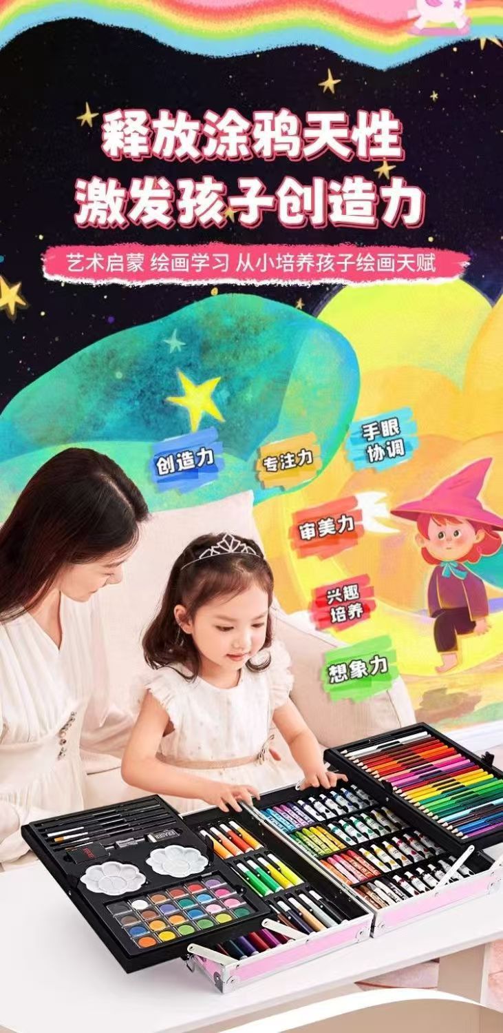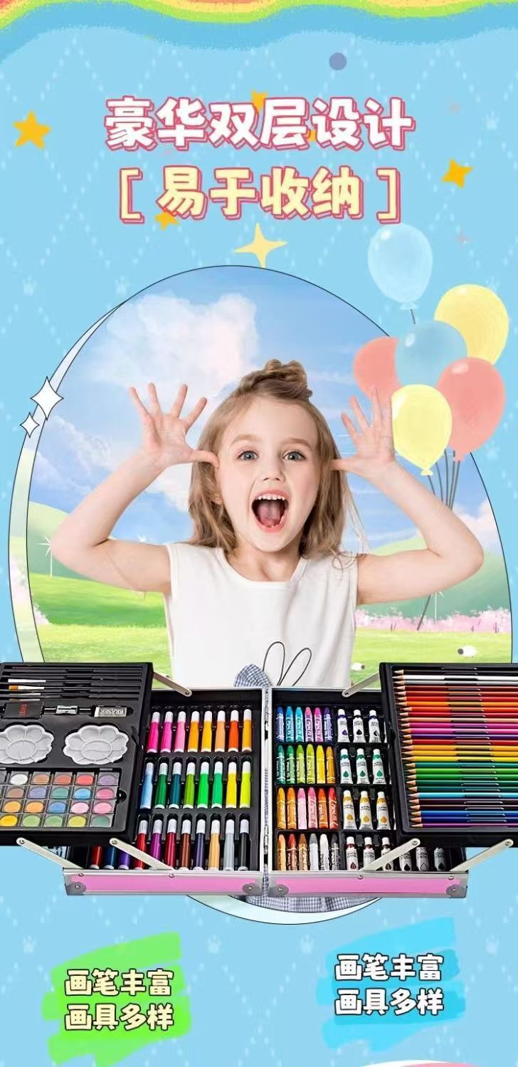145 caja de aluminio de doble capa, juego de pintura para niños, pincel, acuarela, crayón, pastel al óleo, suministros de arte para estudiantes, caja de regalo