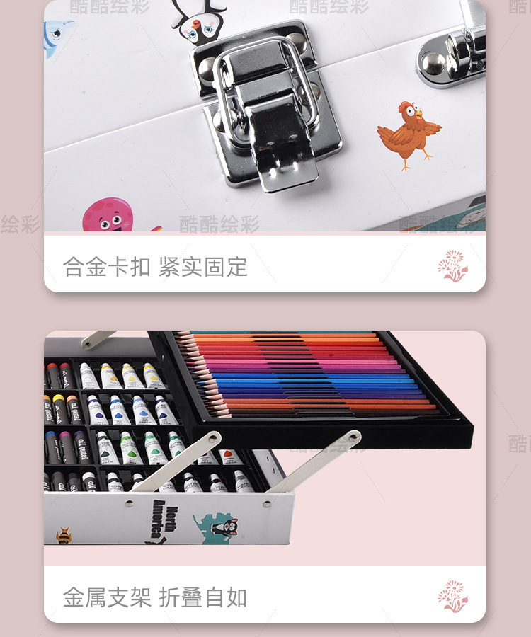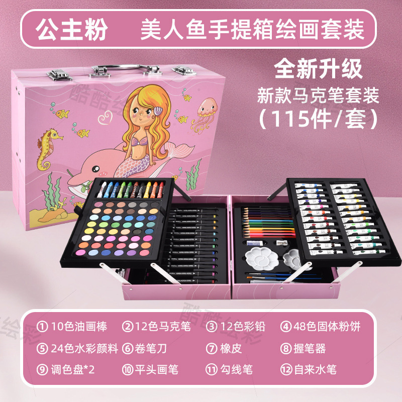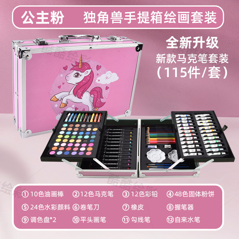 145 Animal World caja de regalo de doble capa para niños dibujo conjunto de herramientas de dibujo pincel herramientas de pincel de color para estudiantes de primaria