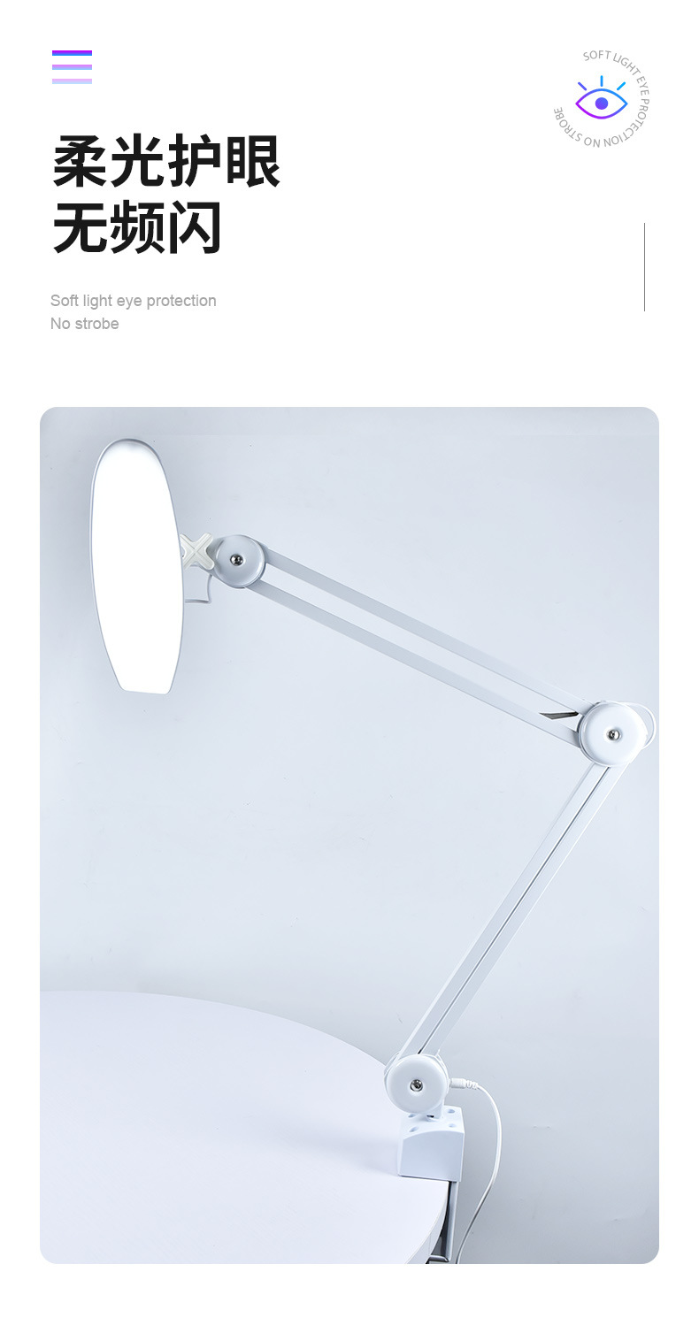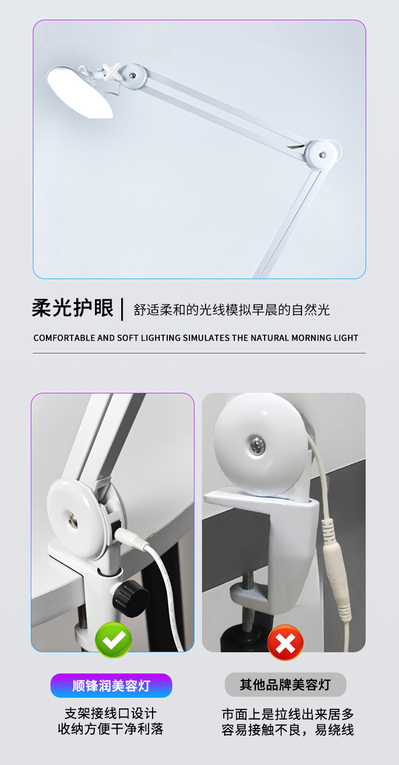Lámpara de belleza plegable, lámpara de tiburón, lámpara de iluminación para manicura, lámpara de estudio con clip de escritorio, lámpara de bordado para tatuajes de pestañas, luz de relleno