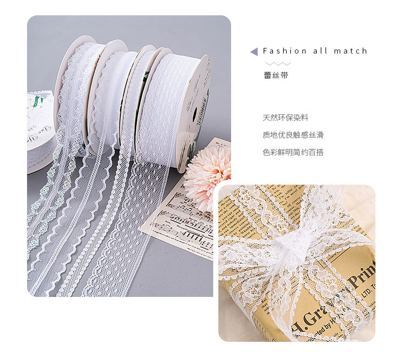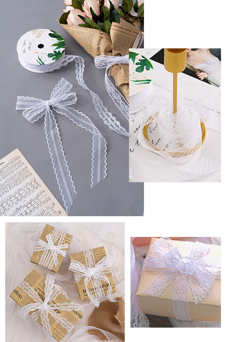 Hilo de encaje blanco con ins mano sosteniendo flor paquete encaje ajuste decorativo cinta ramo regalo DIY embalaje cinta