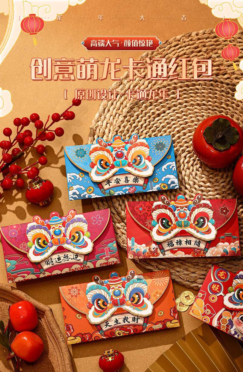 Año de la Serpiente sobre rojo de la marea nacional despierta león personalidad dibujos animados estampado bolsas de sobre rojo creativas del Festival de Primavera Li es sellar sobre rojo de Año Nuevo al por mayor
