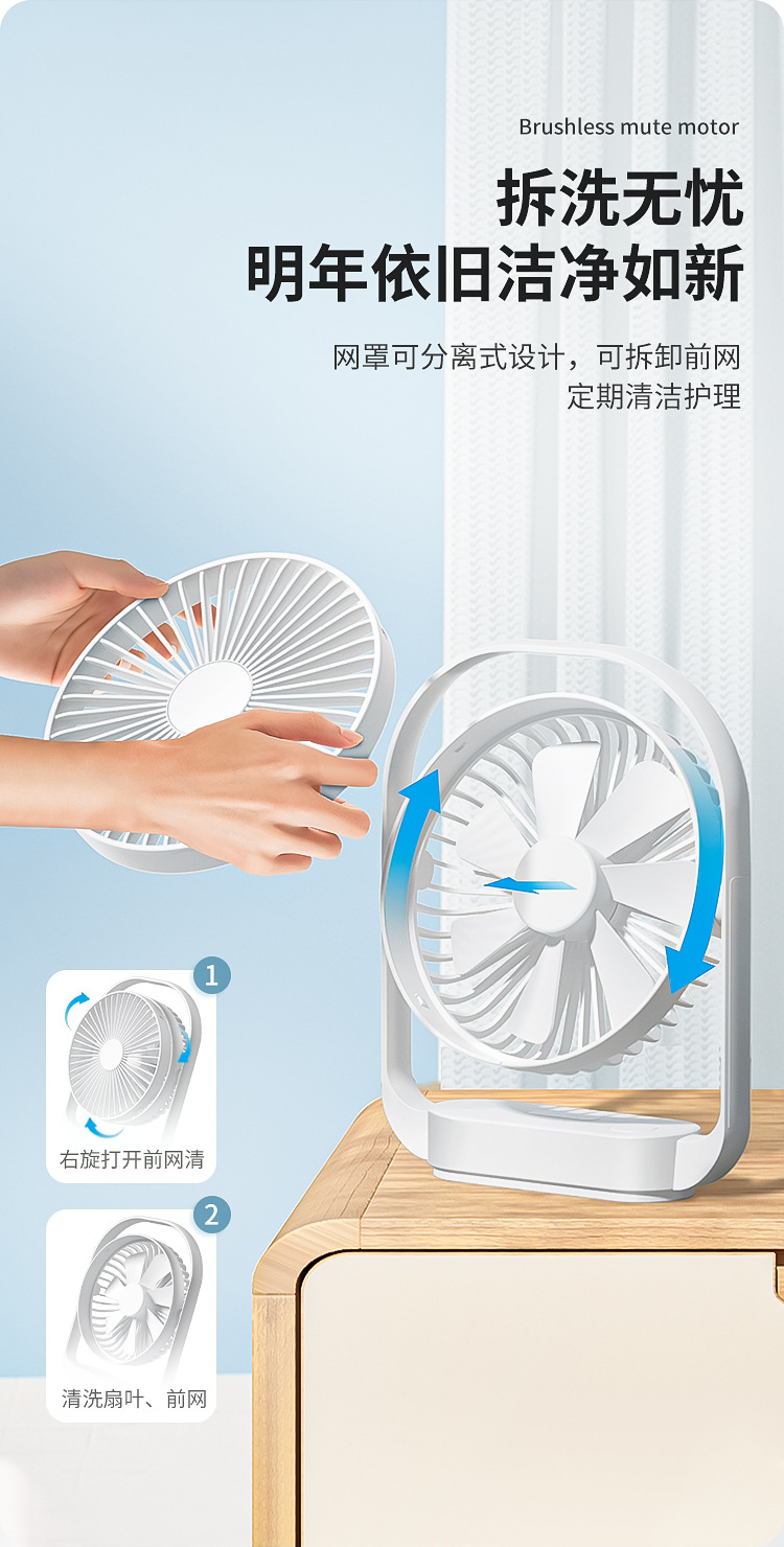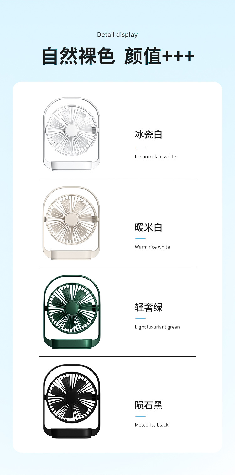Mejorado a 2000 mAh [4 niveles de velocidad del viento + 2 niveles de luz nocturna + desmontable]