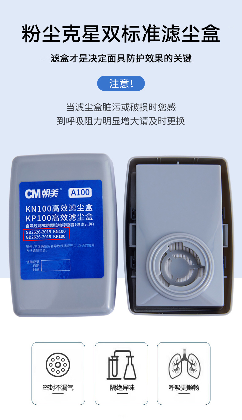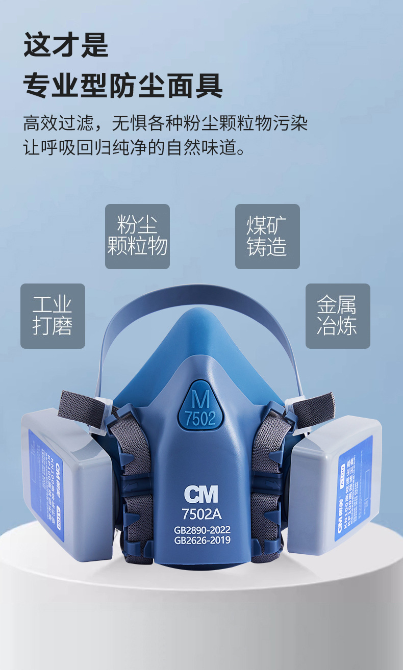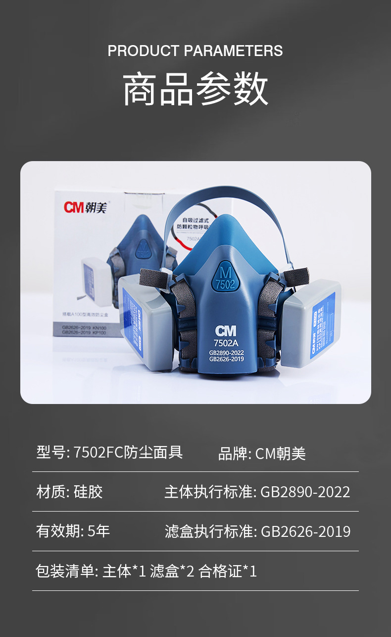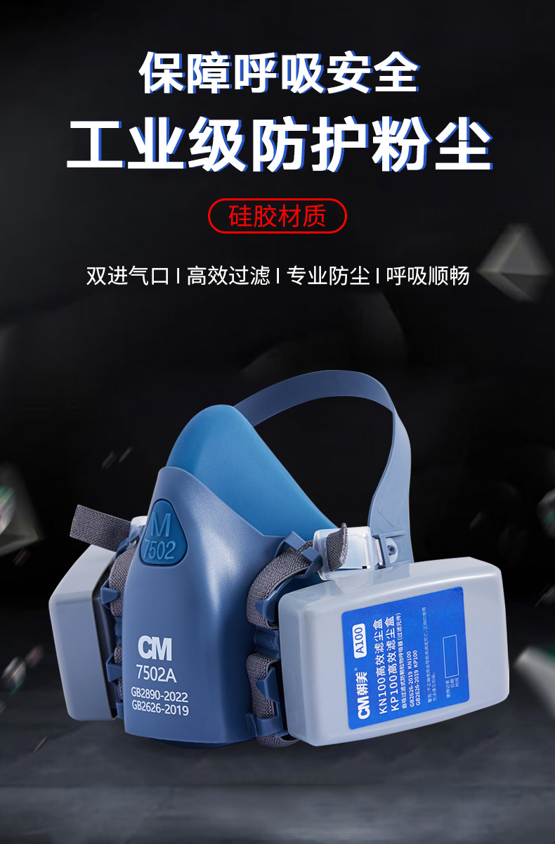 cm Zhao Mei 7502 máscara de polvo de silicona de doble tanque KN100 máscara de polvo permeable a la industria máscara especial de polvo
