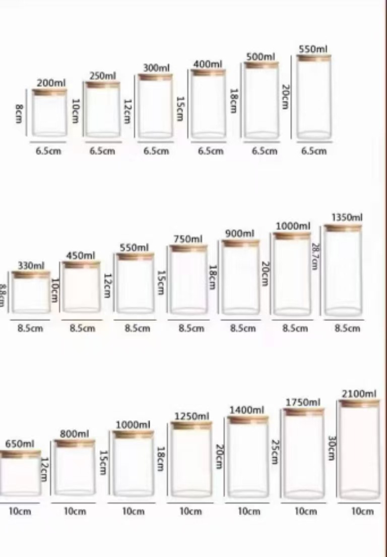 | Colores | 65*60 (con cubierta de bambú),65*80mm 200ml (con cubierta de bambú),65*100mm 250ml (con cubierta de bambú),65*120mm 300ml (con cubierta de bambú),65*150mm 380ml (con cubierta de bambú),65*180mm 460ml (con cubierta de bambú),65*200mm 520ml (con cubierta de bambú),85*100mm 450ml (con cubierta de bambú),85*120mm 550ml (con cubierta de bambú),85*150mm 700ml (con cubierta de bambú),85*200mm 950ml (con cubierta de bambú),95*100mm (con cubierta de bambú),95*120mm (con cubierta de bambú),95*150mm (con cubierta de bambú),95*200mm (con cubierta de bambú),100*100mm 680ml (con cubierta de bambú),100*120mm 750ml (con cubierta de bambú),100*150mm 950ml (con cubierta de bambú),100*200mm 1300ml (con cubierta de bambú),100*250mm 1700ml (con cubierta de bambú),100*300mm 2000ml (con cubierta de bambú),6,5 cm cubierta de bambú,8,5 cm cubierta de bambú,Cubierta de bambú de 10cm |