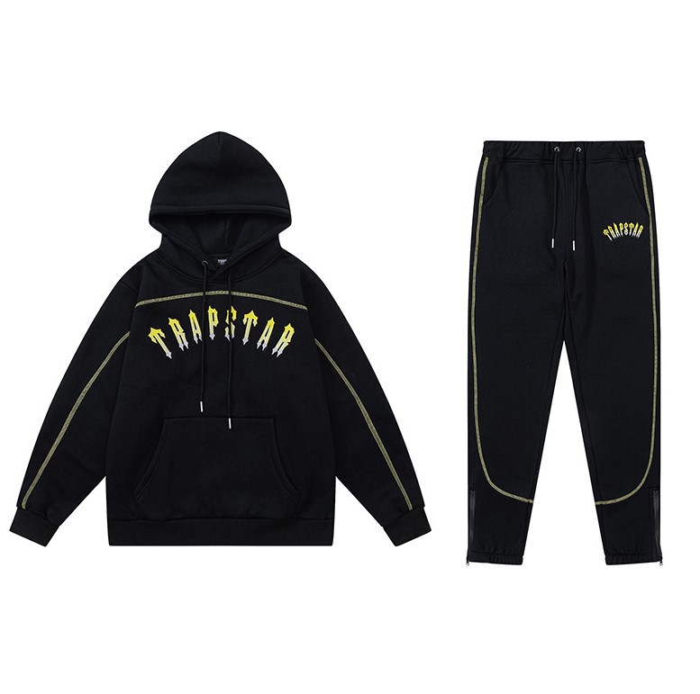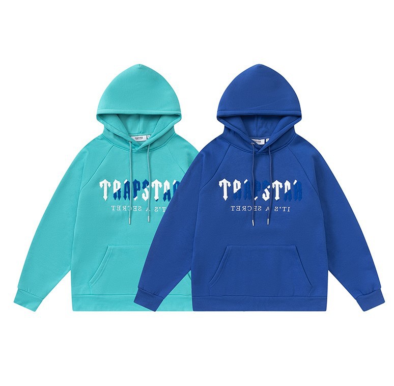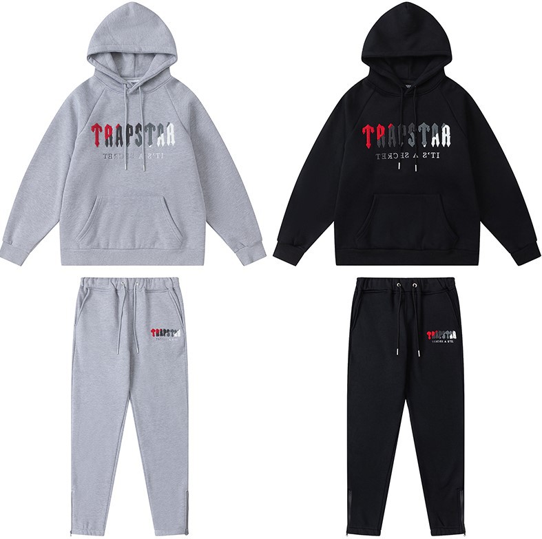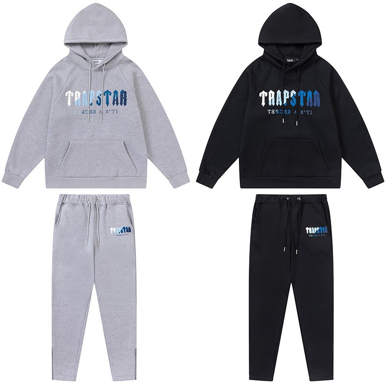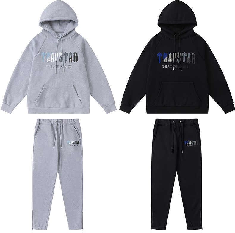 Europa y América Trapstar blue line negro cabeza de tigre toalla bordado más terciopelo con capucha suéter pantalones pantalones casuales