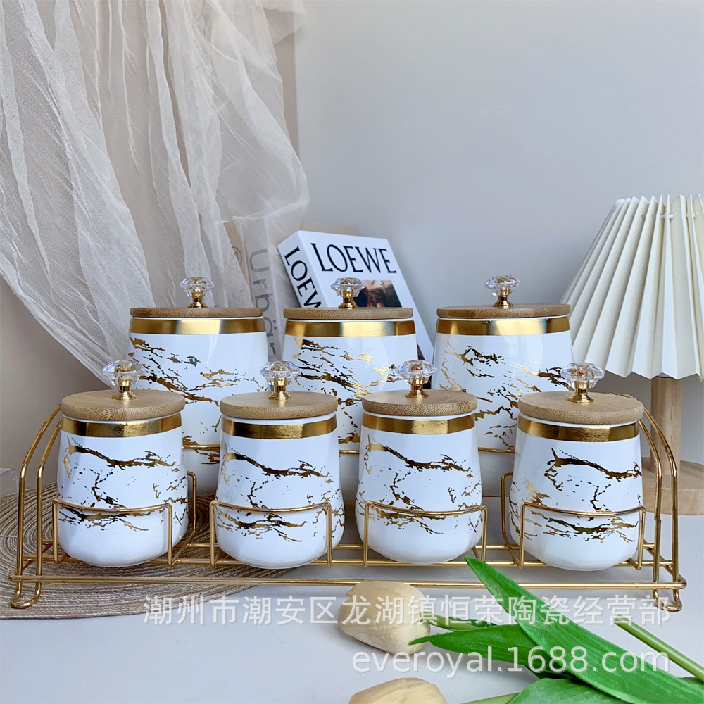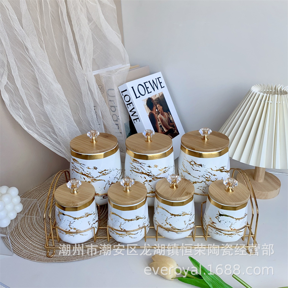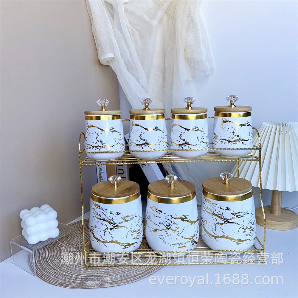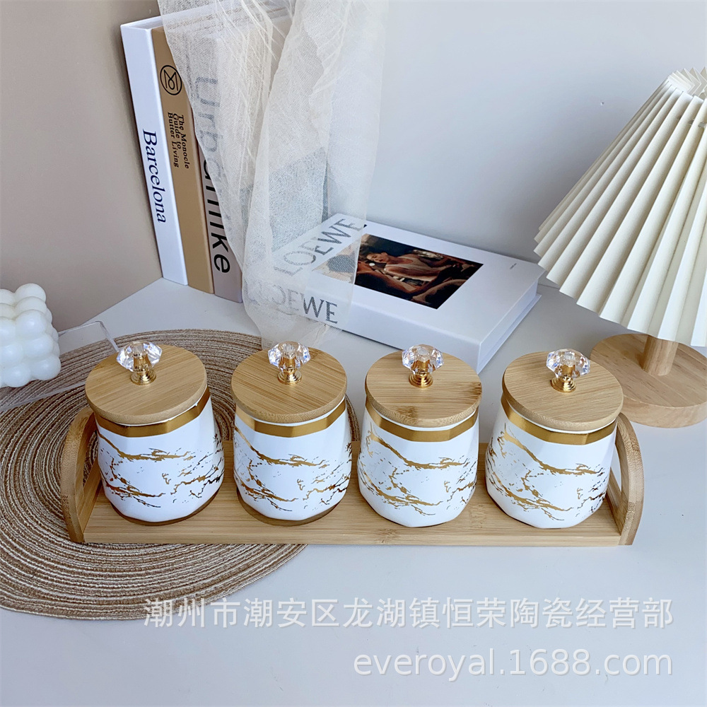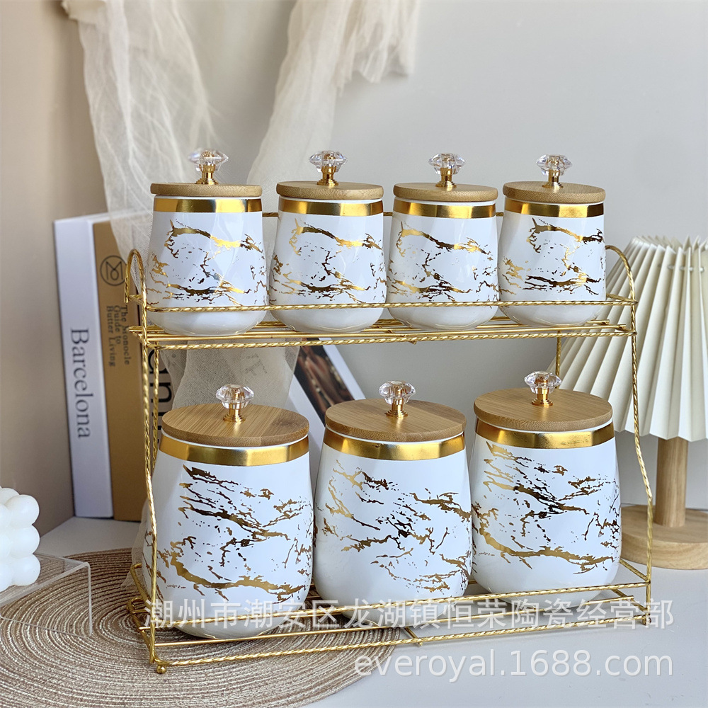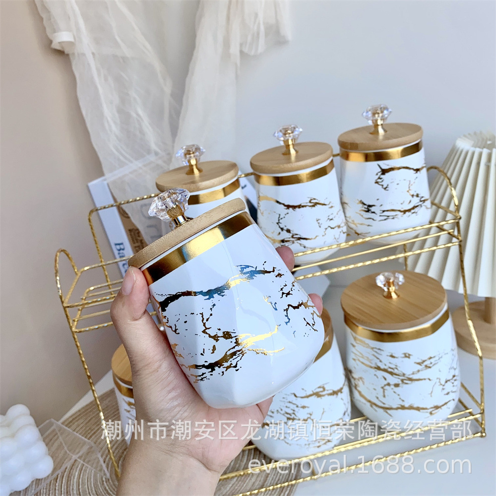 Fábrica de suministro al por mayor condimento de cocina nórdica sellado latas de almacenamiento doméstico conjunto de almacenamiento de cristal de lujo fino